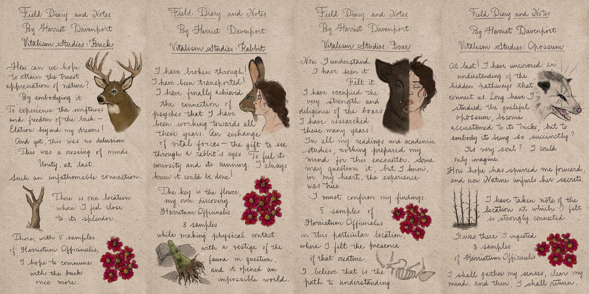 Вскоре игроки обнаружили заметки Харриет. В них тоже упоминалось превращение в животных; для трансформации следовало принять растение, находясь рядом с телом животного.