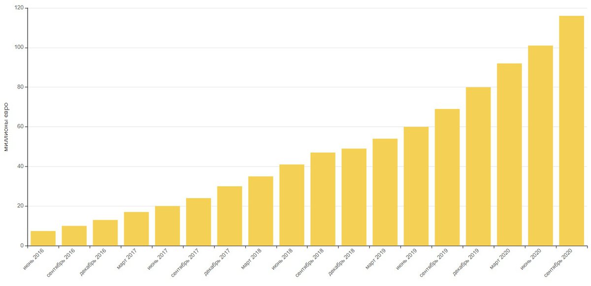 - Сентябрь 2020 года: 116 миллионов евро (+15 миллионов).