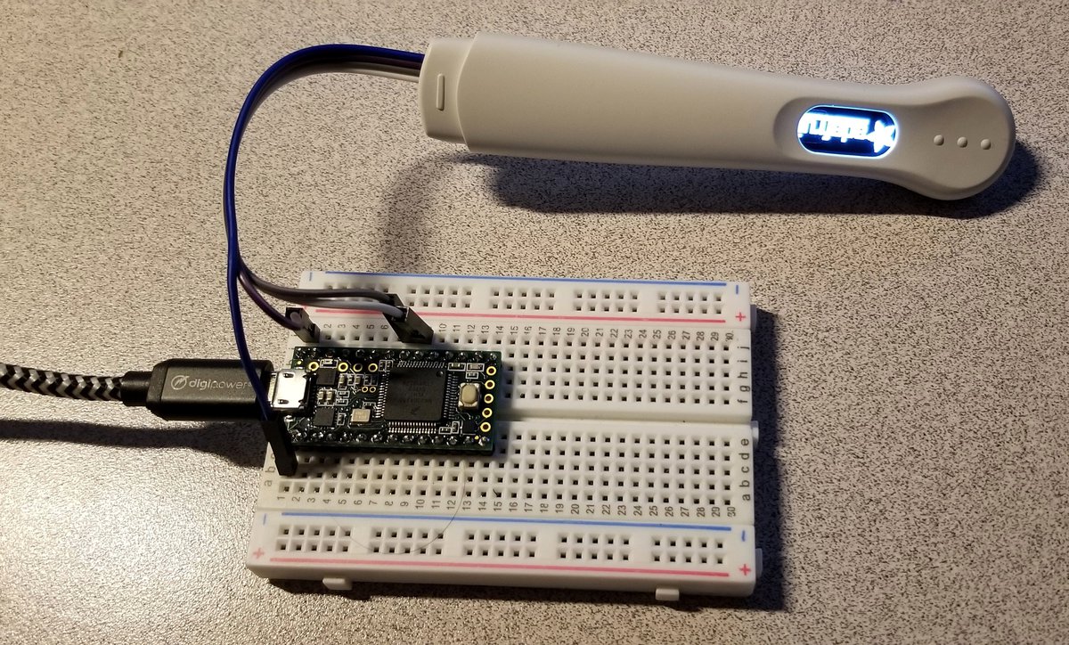 В тест встроен слабенький чип, обрабатывающий данные с фотосенсоров, а дисплей может выдавать только четыре заранее определенных изображения — использовать их не представлялось возможным. Инженер поменял дисплей на OLED-экран такого же размера, а чип заменил на собственную плату.