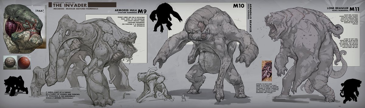 Более-менее обычные враги создавались сразу в нескольких модификациях. На основе базового дизайна существа художники рисовали несколько альтернативных версий: например, с усиленными лапами или возможностью атаковать на дальней дистанции.