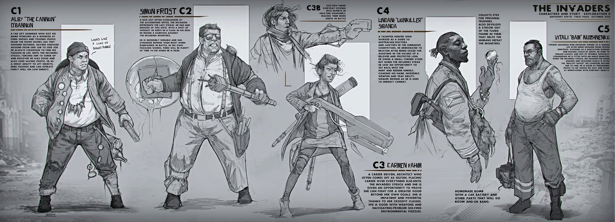 Разработчики полагали, что героями The Invader станут выходцы из всех слоев общества. Одним из протагонистов, к примеру, мог быть Морис — бездомный, все имущество которого умещалось в рюкзаке. Еще один характерный герой: Абрам Эрикссон, моряк-китобой, вооруженный гарпуном.