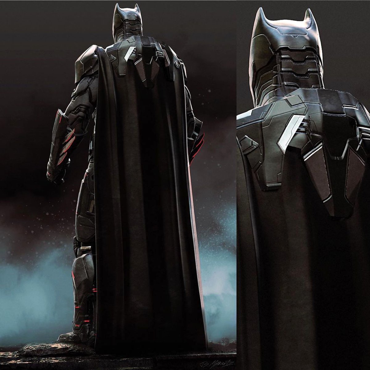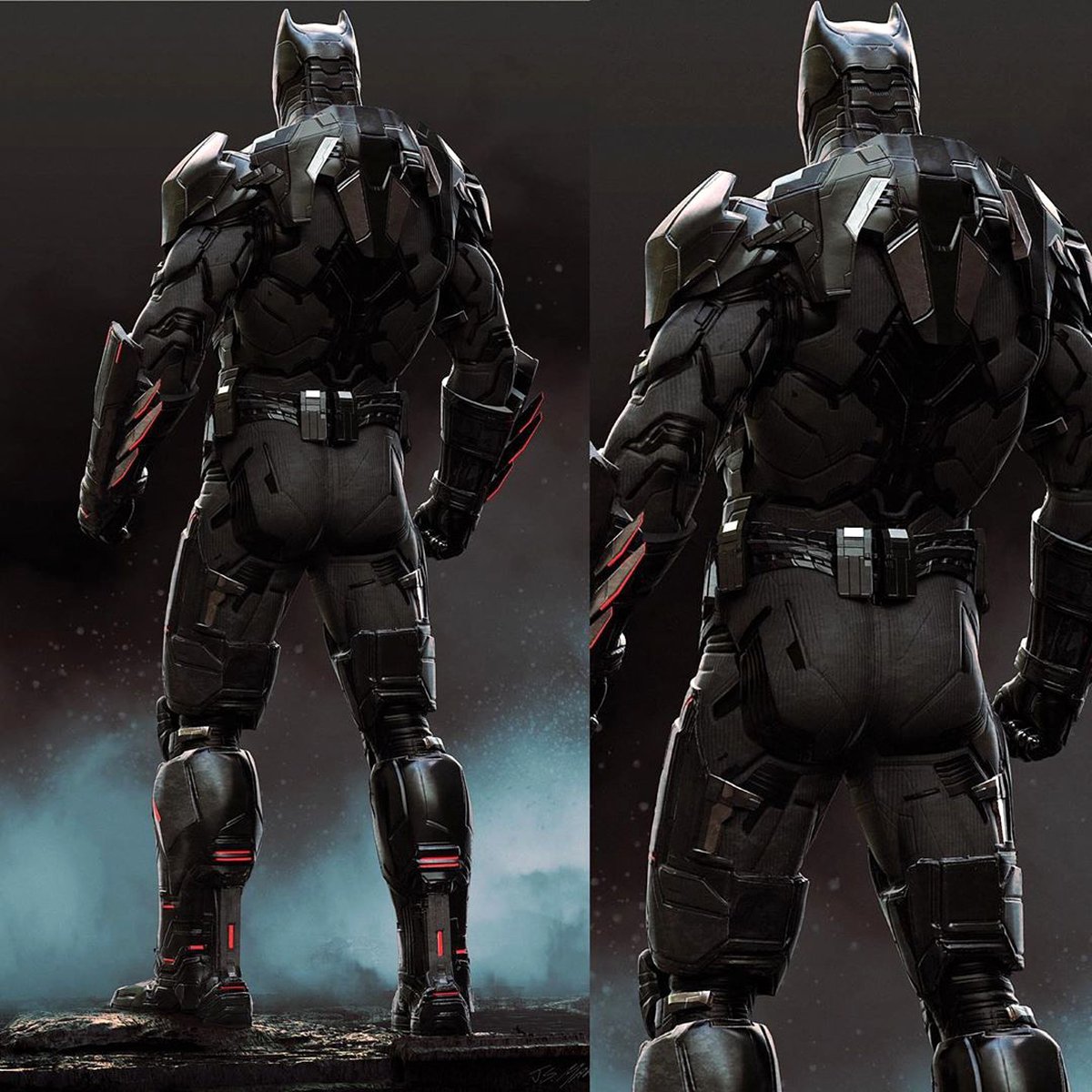 Вдобавок к артам Бизаррои Паразита художник опубликовал еще несколько изображений Бэтмена. Здесь можно подробнее рассмотреть боевую броню персонажа — как спереди, так и сзади.