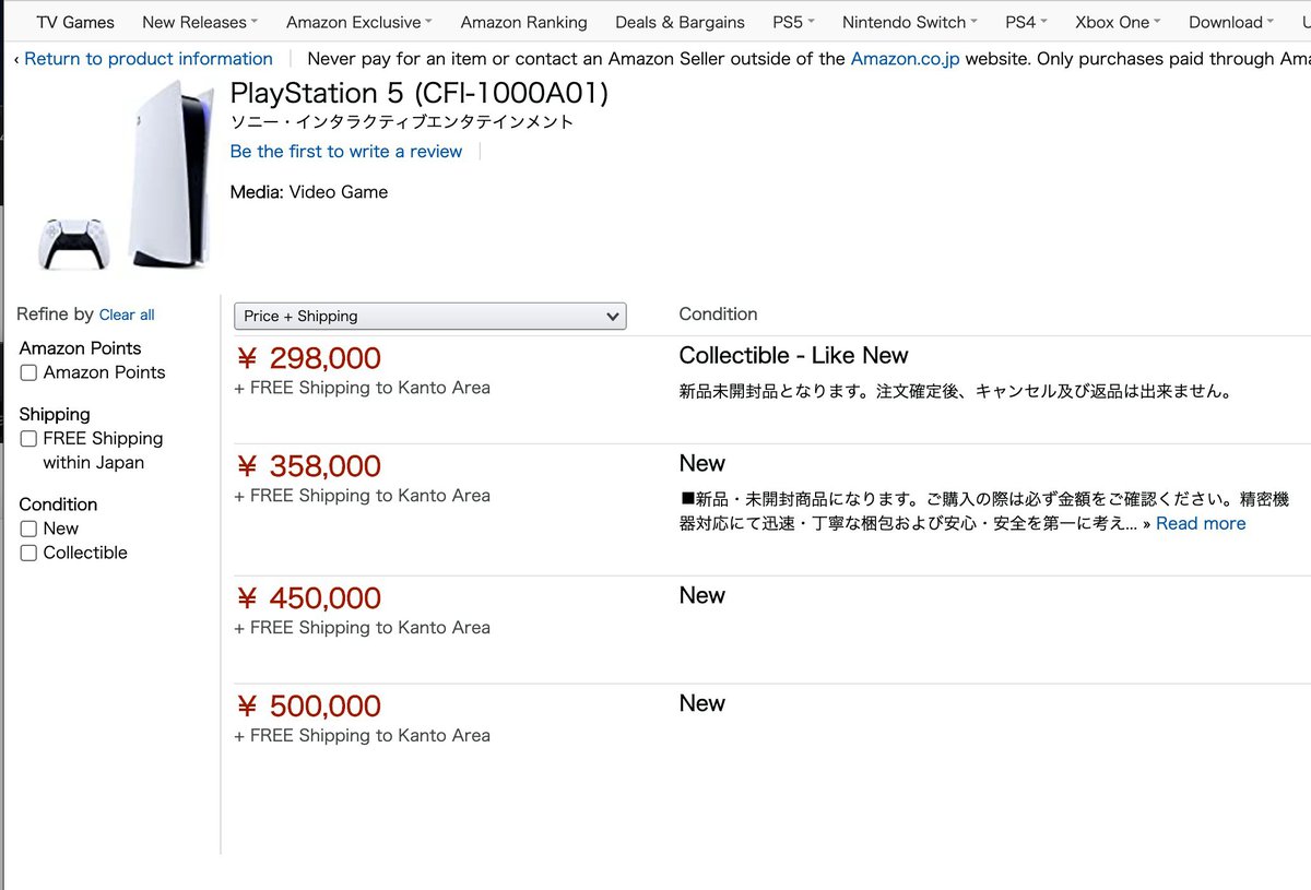 Сейчас, отмечает аналитик, на предзаказах PlayStation 5 пытаются зарабатывать реселлеры. Например, на том же Amazon выставлены консоли за 298-500 тысяч йен — это порядка 214-360 тысяч рублей. По словам Тото, люди покупают консоли даже за такие деньги.