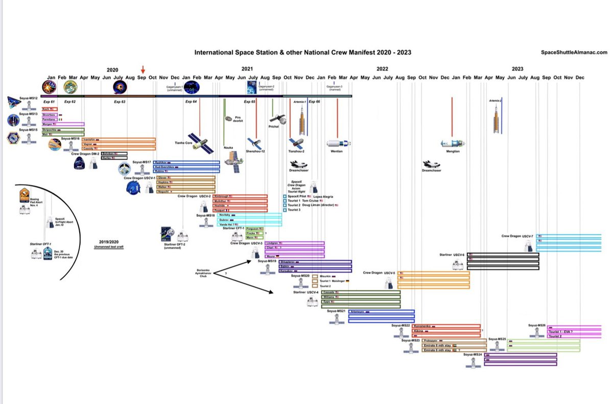 На октябрь 2021 года запланирован запуск корабля Crew Dragon от компании SpaceX. Пилотом будет Лопес Алегрия, пассажирами станут Том Круз и режиссер Даг Лайман. Еще одно место на Crew Dragon останется свободным.
