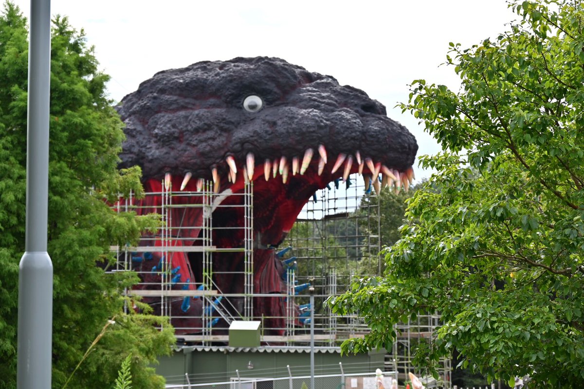 Судя по фотографиям, регулярно публикующимся в твиттере проекта и его фанатов, стройка практически завершена. Сейчас готова морда Годзиллы, но с тела монстра строительные леса еще не сняты. Сроки завершения стройки не называются.