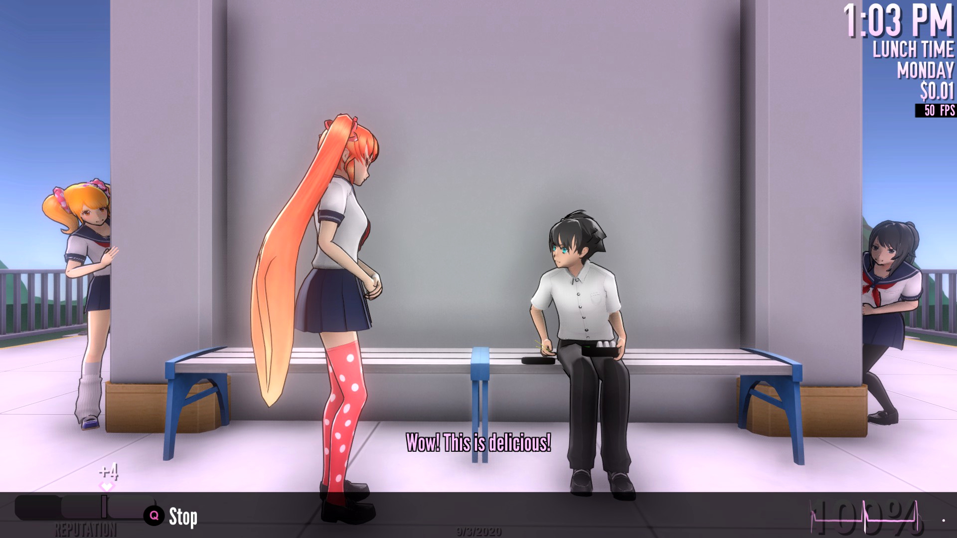 А вот что действительно портит атмосферу, так это баги. Так, например, в моей сессии (причём тестировал я игру на нескольких билдах) студенты могли становиться внутри стульев. А драгоценного семпая вообще могло вертеть по кругу на месте, словно он какой-то вертолёт. Также некоторые фанаты жаловались что модельку периодически раскорячивает и по школе передвигается не милый студент, а какой-то то ли гном, то ли монстр. Впрочем, лично я с подобной проблемой не сталкивался.