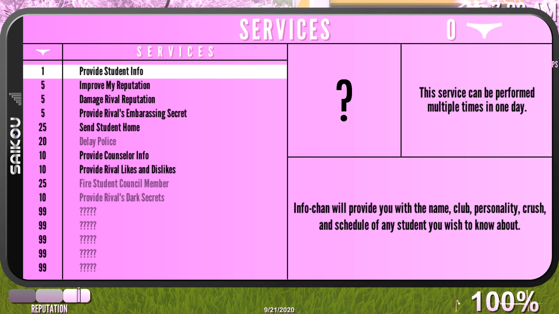 И надо же, так удачно легла карта, что именно в этот момент с нашей героиней связывается некая таинственная Инфо-чан, местная городская легенда, у которой есть свои счёты с потенциальной девушкой нашего возлюбленного. В связи с чем она предлагает нам свою помощь, а заодно лёгкий сторонний заработок - Аямо должна устанавливать скрытые жучки с прослушивающим устройством в публичных местах и фотографировать на свой телефон нижнее бельё студентов. Взамен же она будет получать деньги и определённые... Информационные услуги.