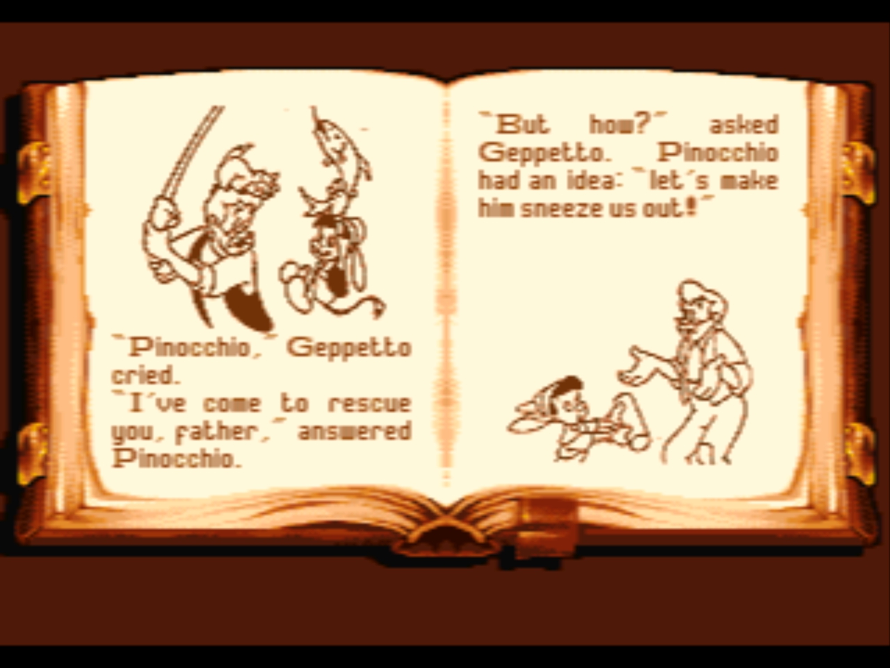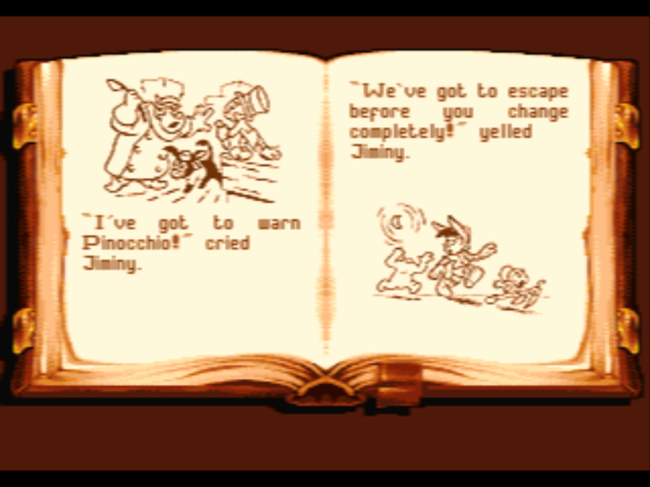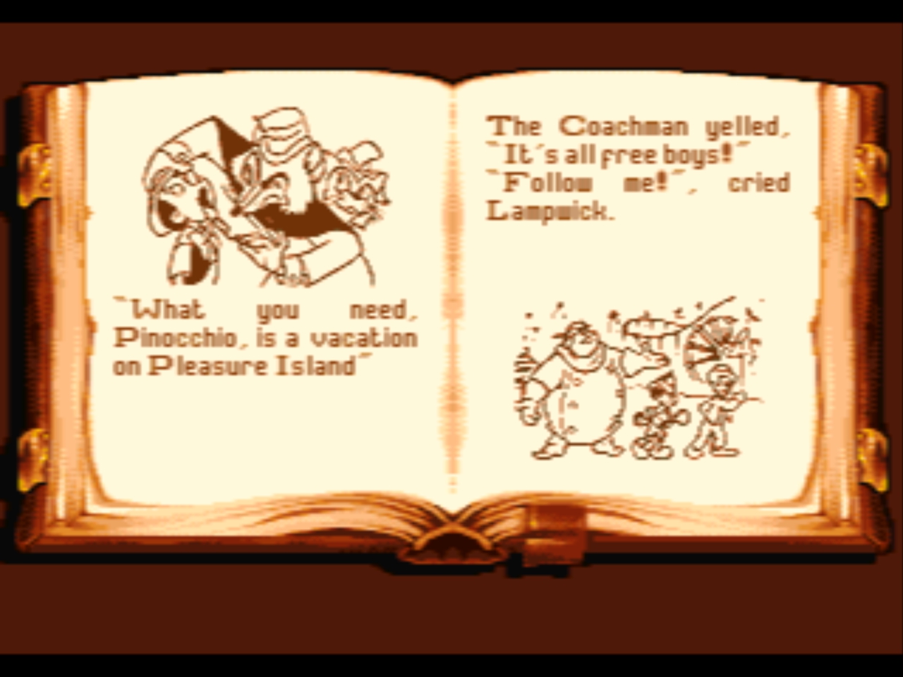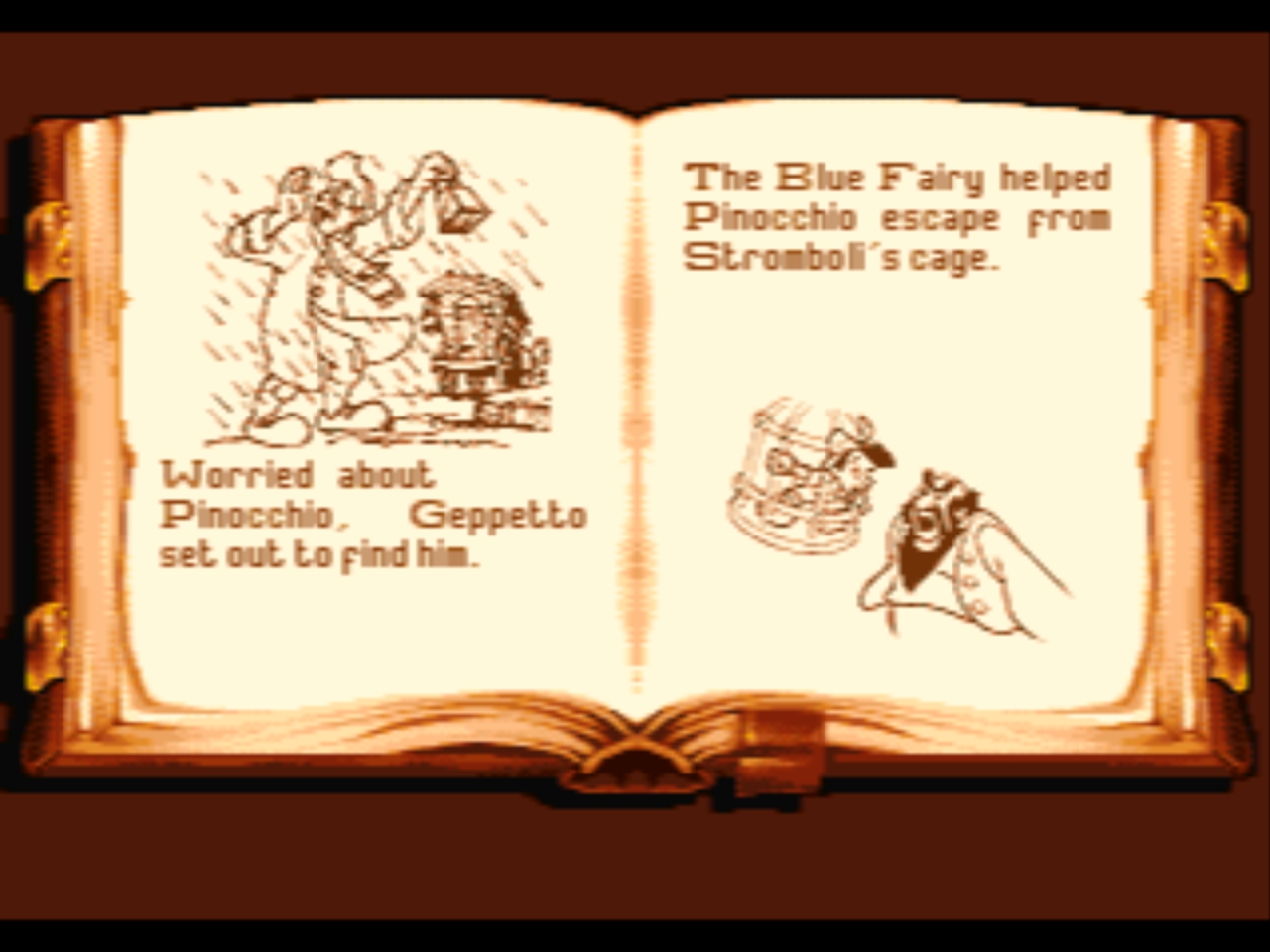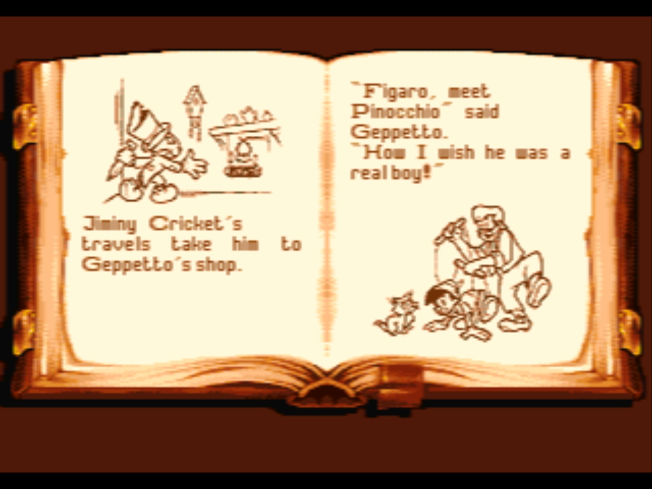 Сюжет игры основан на мультфильме 1940 года, от студии Walt Disney. Игра повествует о похождениях мальчика, сделанного из дерева мастером Геппетто. Игра очень короткая, но наполнена разнообразными уровнями, от обычного платформера, до: танцев в QTE, поездок на вагонетках, плаванием под водой и сражениях с боссами. Сюжет пересказывается в виде книги, страницы которой перелистываются каждый уровень.