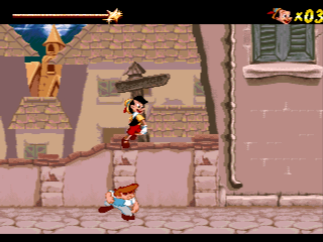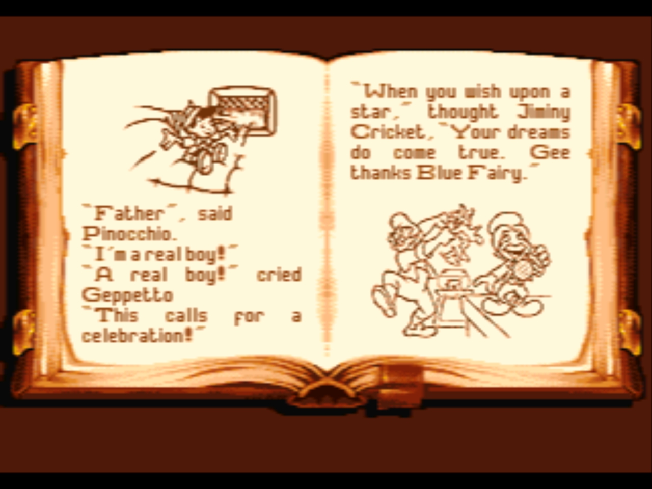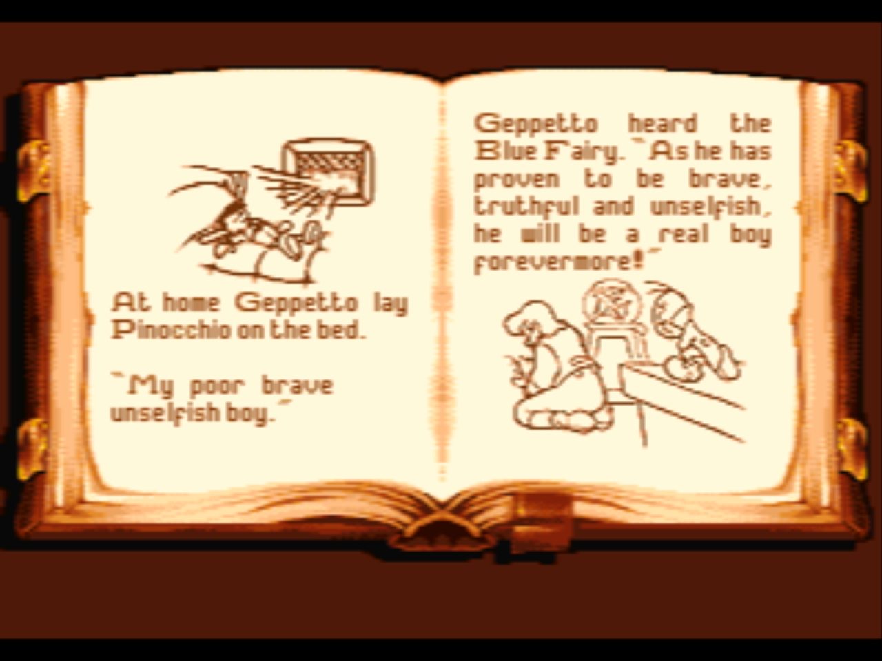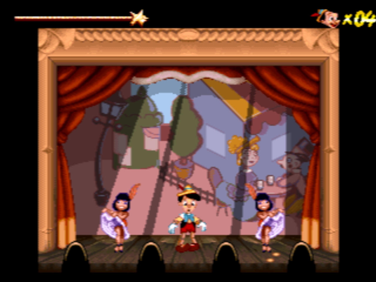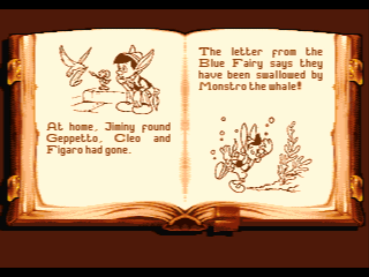 Сюжет игры основан на мультфильме 1940 года, от студии Walt Disney. Игра повествует о похождениях мальчика, сделанного из дерева мастером Геппетто. Игра очень короткая, но наполнена разнообразными уровнями, от обычного платформера, до: танцев в QTE, поездок на вагонетках, плаванием под водой и сражениях с боссами. Сюжет пересказывается в виде книги, страницы которой перелистываются каждый уровень.