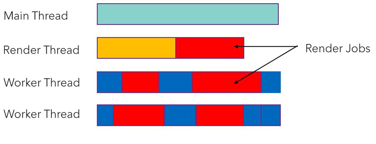 В результате поток рендеринга стал бутылочным горлышком, снижающим скорость отрисовки кадра. Чтобы исправить эту проблему, разработчикам пришлось переделать графический движок так, чтобы он мог разбивать отрисовку на несколько потоков.