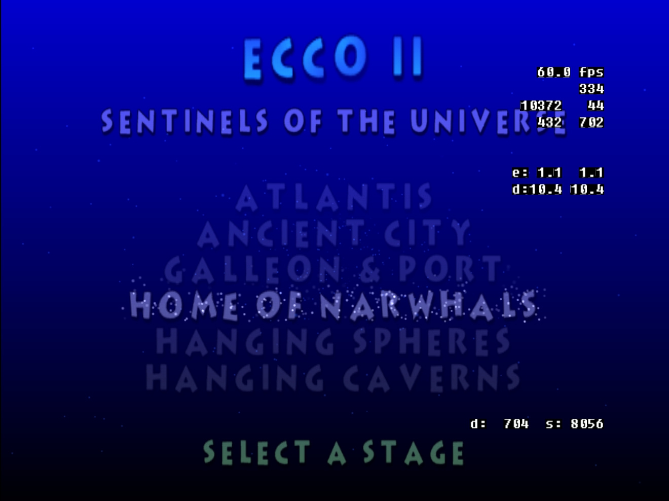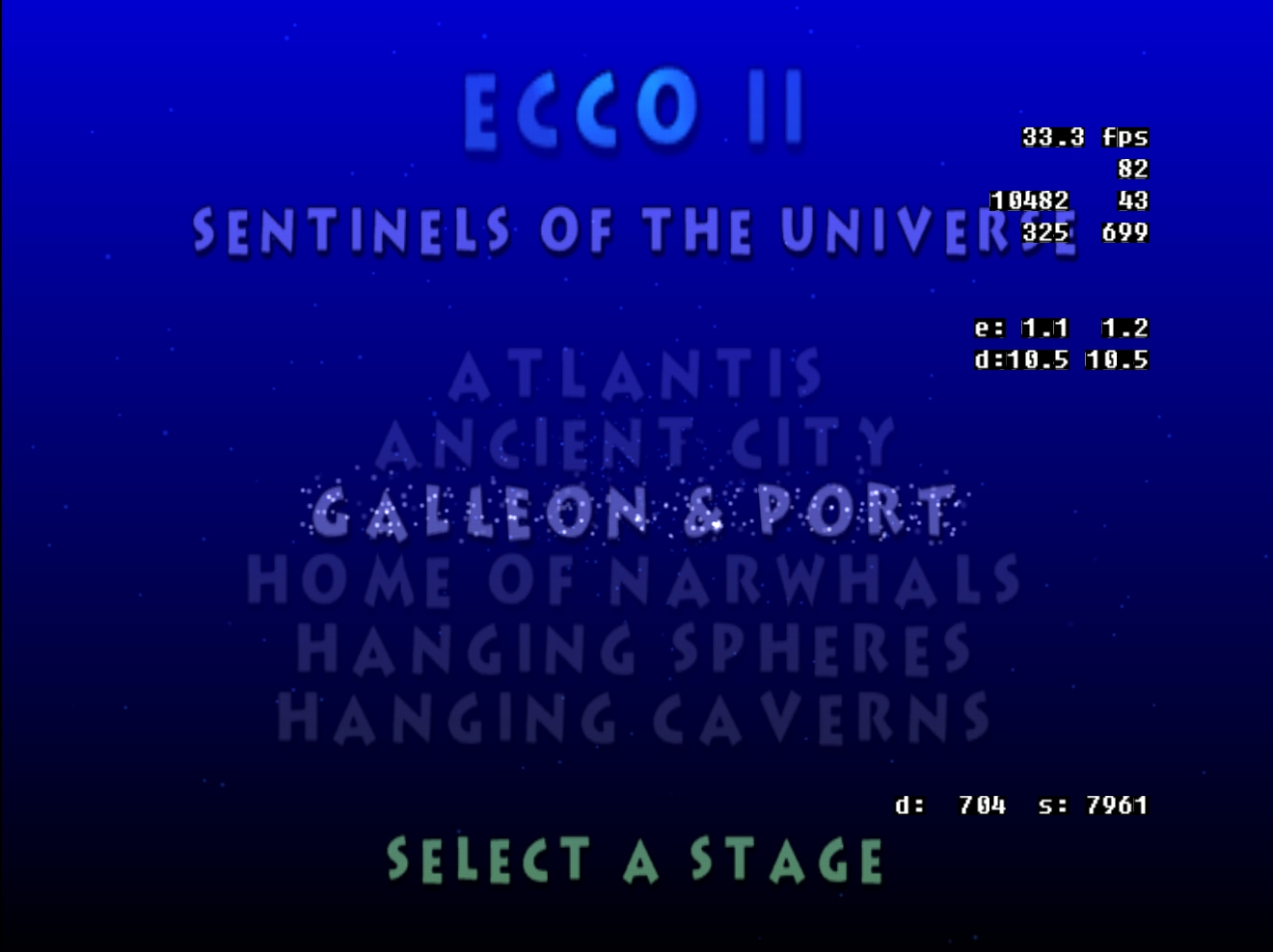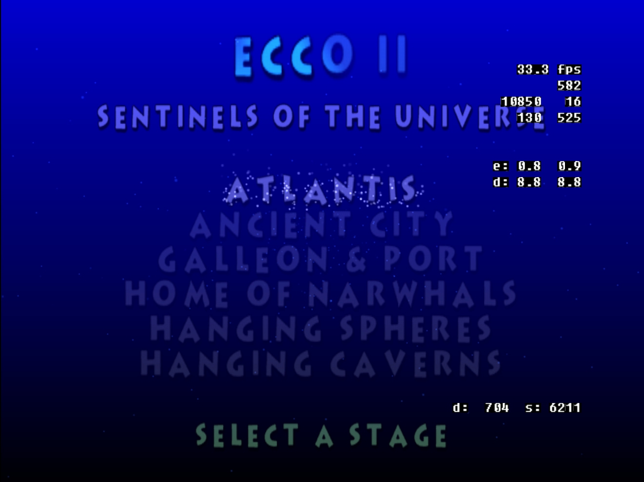 Игра очень сырая. Сюжета, само собой, нет, как и начала уровня с его завершением. Выбор уровня происходит прямо из меню. Всего доступно 6 уровней с различным набором локаций, но только первый этап похож на игру, и только на первом этапе есть дельфины, с которыми можно поговорить. Даже есть дополнительные задания, связанные с прыжками через кольца. На втором этапе появляется первый и последний враг – акула, которая исчезает спустя какое-то время. Остальные уровни имеют только заготовки с множеством пустых мест, непроходимых барьеров и препятствий. На одном из уровней, Экко научился летать! На последнем уровне есть что-то похожее на собираемый предмет, но он приводит к бесконечному циклу смертей.