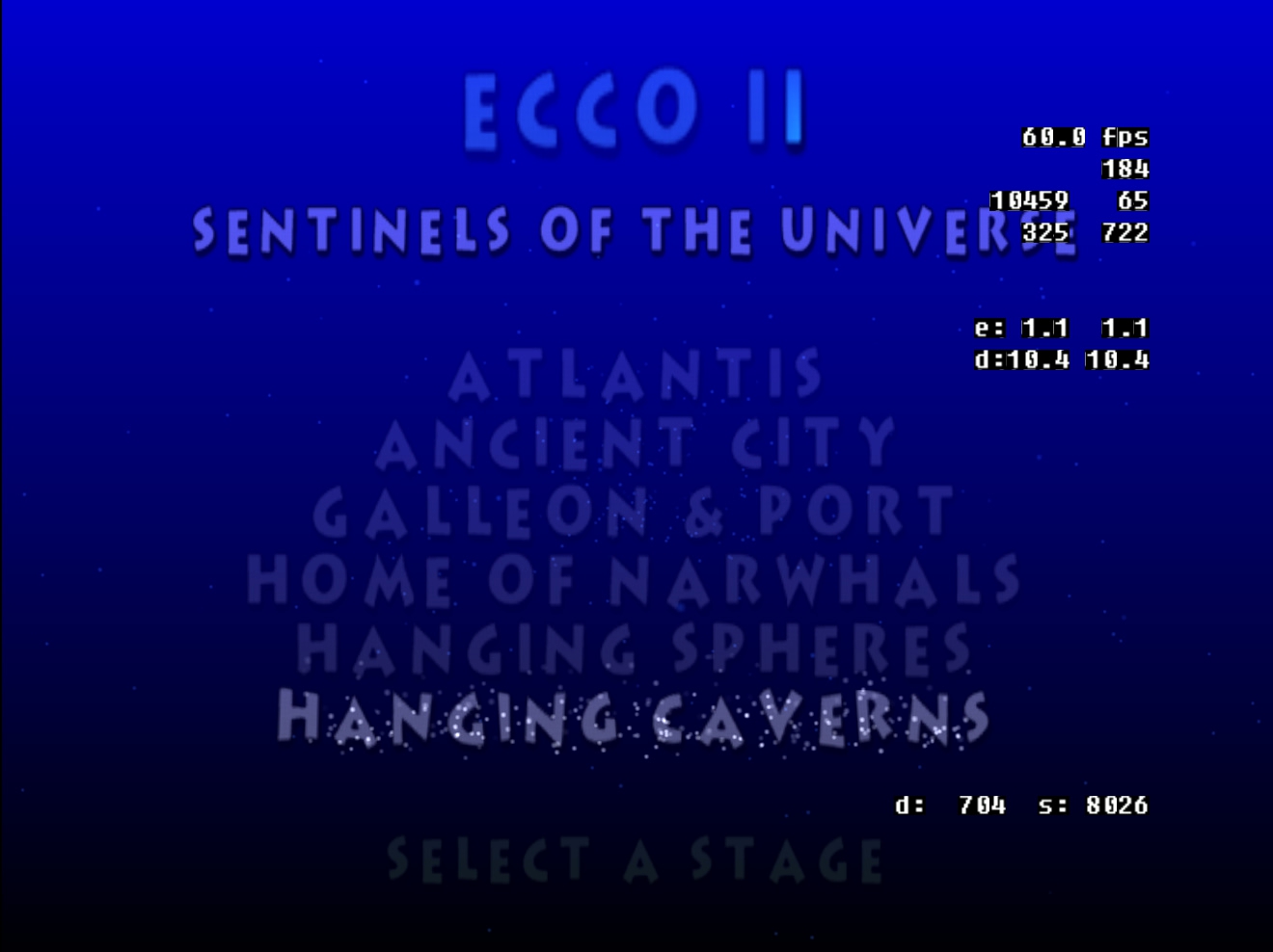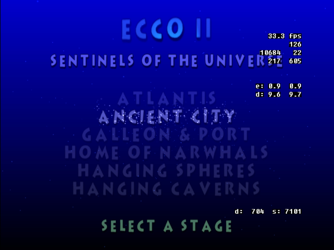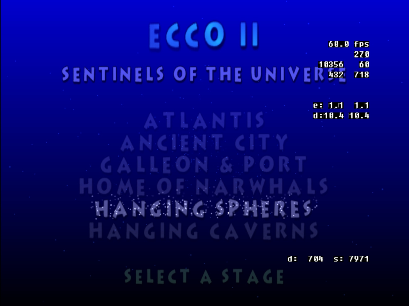 Игра очень сырая. Сюжета, само собой, нет, как и начала уровня с его завершением. Выбор уровня происходит прямо из меню. Всего доступно 6 уровней с различным набором локаций, но только первый этап похож на игру, и только на первом этапе есть дельфины, с которыми можно поговорить. Даже есть дополнительные задания, связанные с прыжками через кольца. На втором этапе появляется первый и последний враг – акула, которая исчезает спустя какое-то время. Остальные уровни имеют только заготовки с множеством пустых мест, непроходимых барьеров и препятствий. На одном из уровней, Экко научился летать! На последнем уровне есть что-то похожее на собираемый предмет, но он приводит к бесконечному циклу смертей.