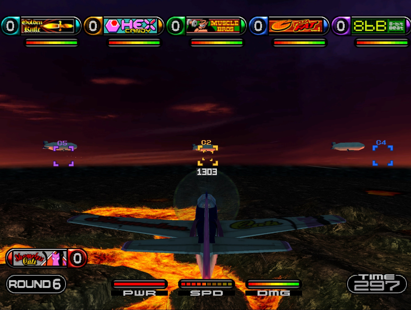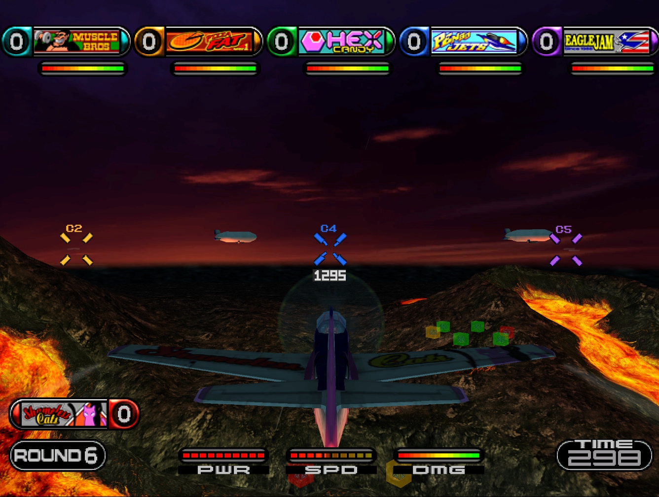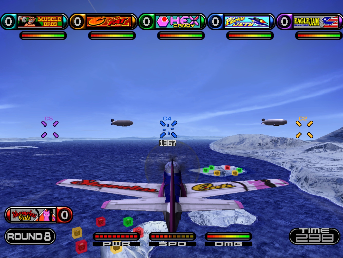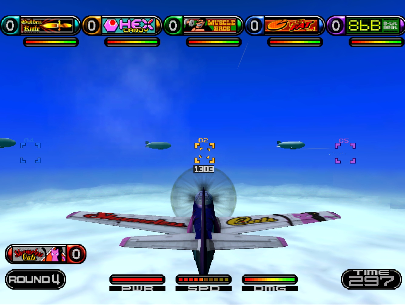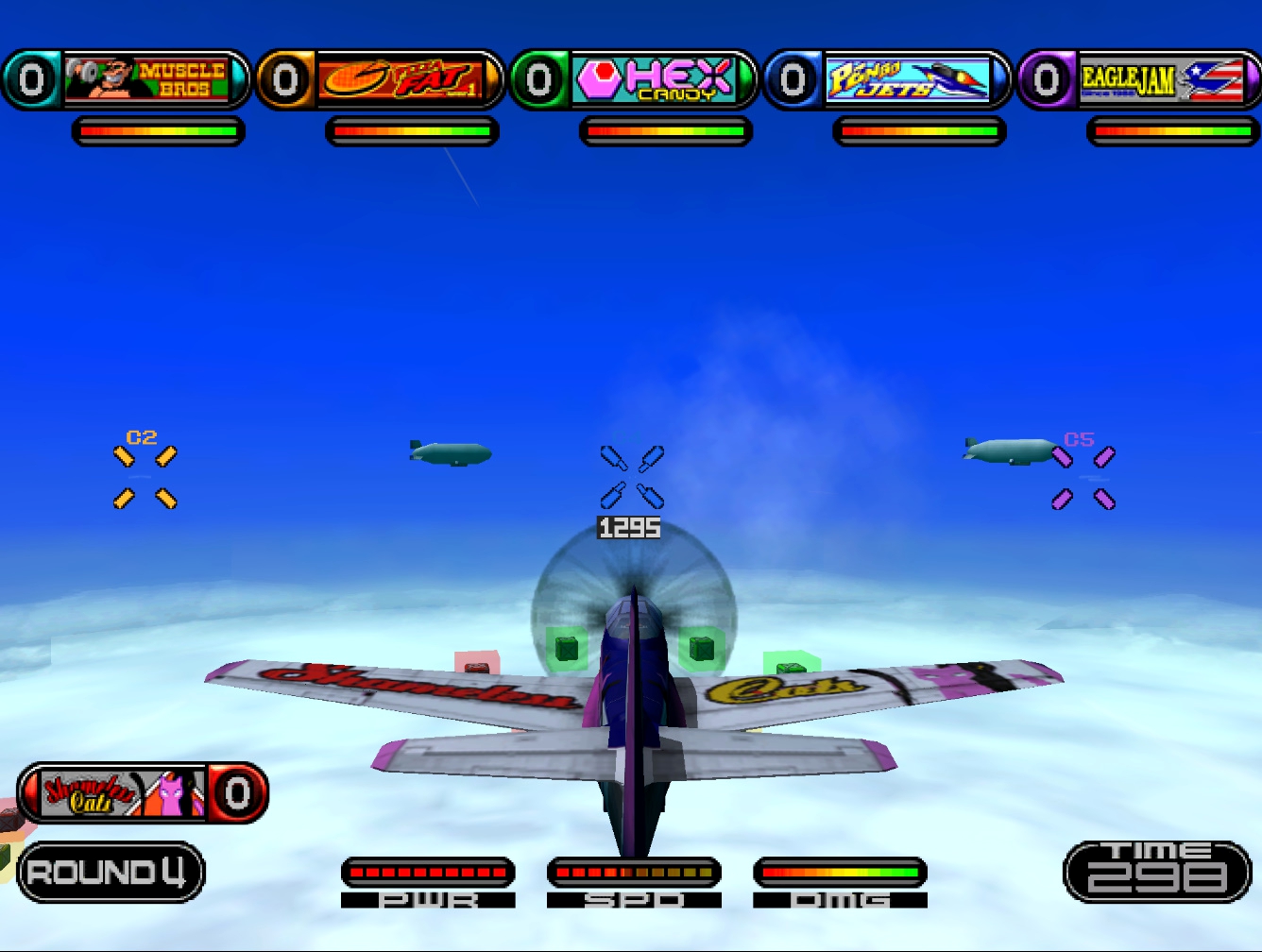 На выбор давались четыре персонажа и четыре арены. Задача игры до банального проста – взрывать самолёты противника до полного уничтожения команды. В боях задействованы не только реальные игроки, но и компьютер. Во время боя можно наблюдать за безтекстурным дирижаблем, а также собирать усиления и улучшения для самолёта через деревянные ящики, которые парят в воздухе. Когда самолёт уничтожается – пилот десантируется.