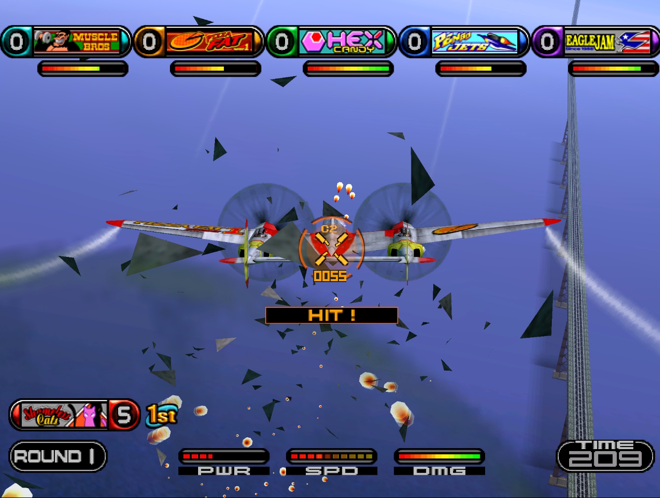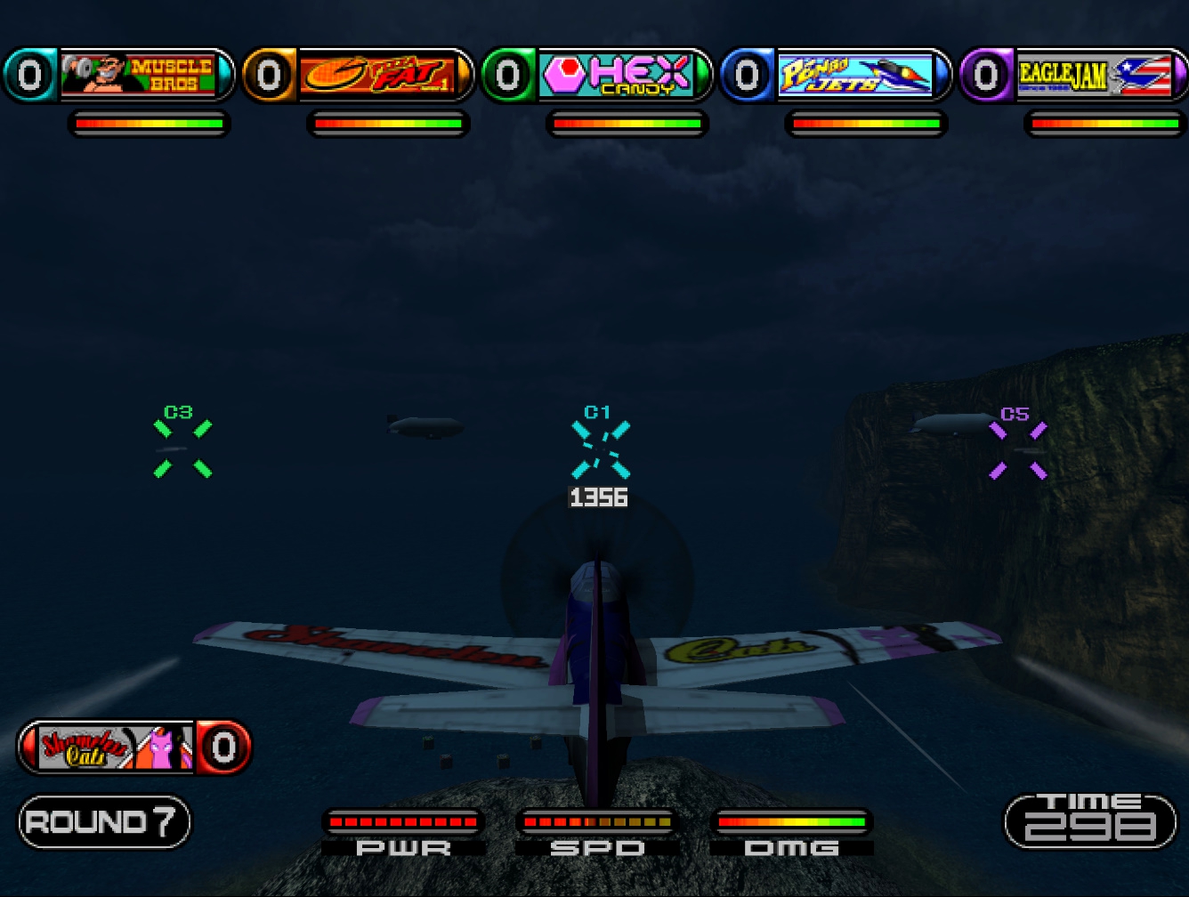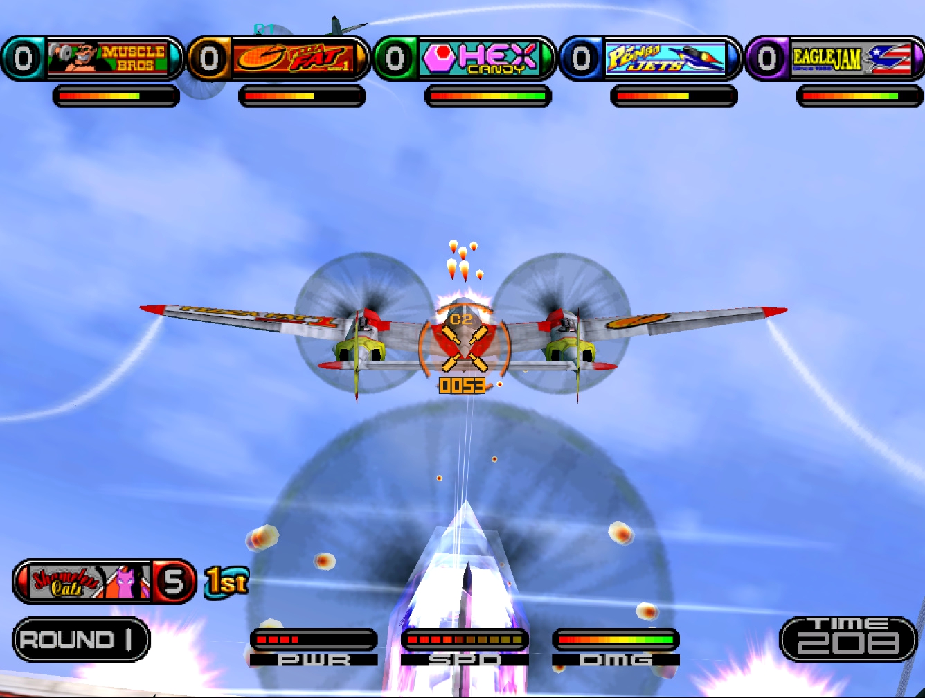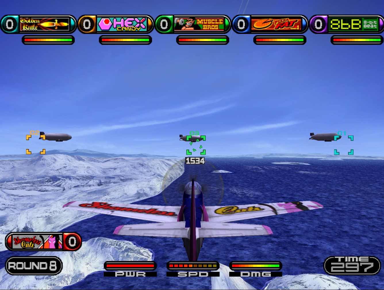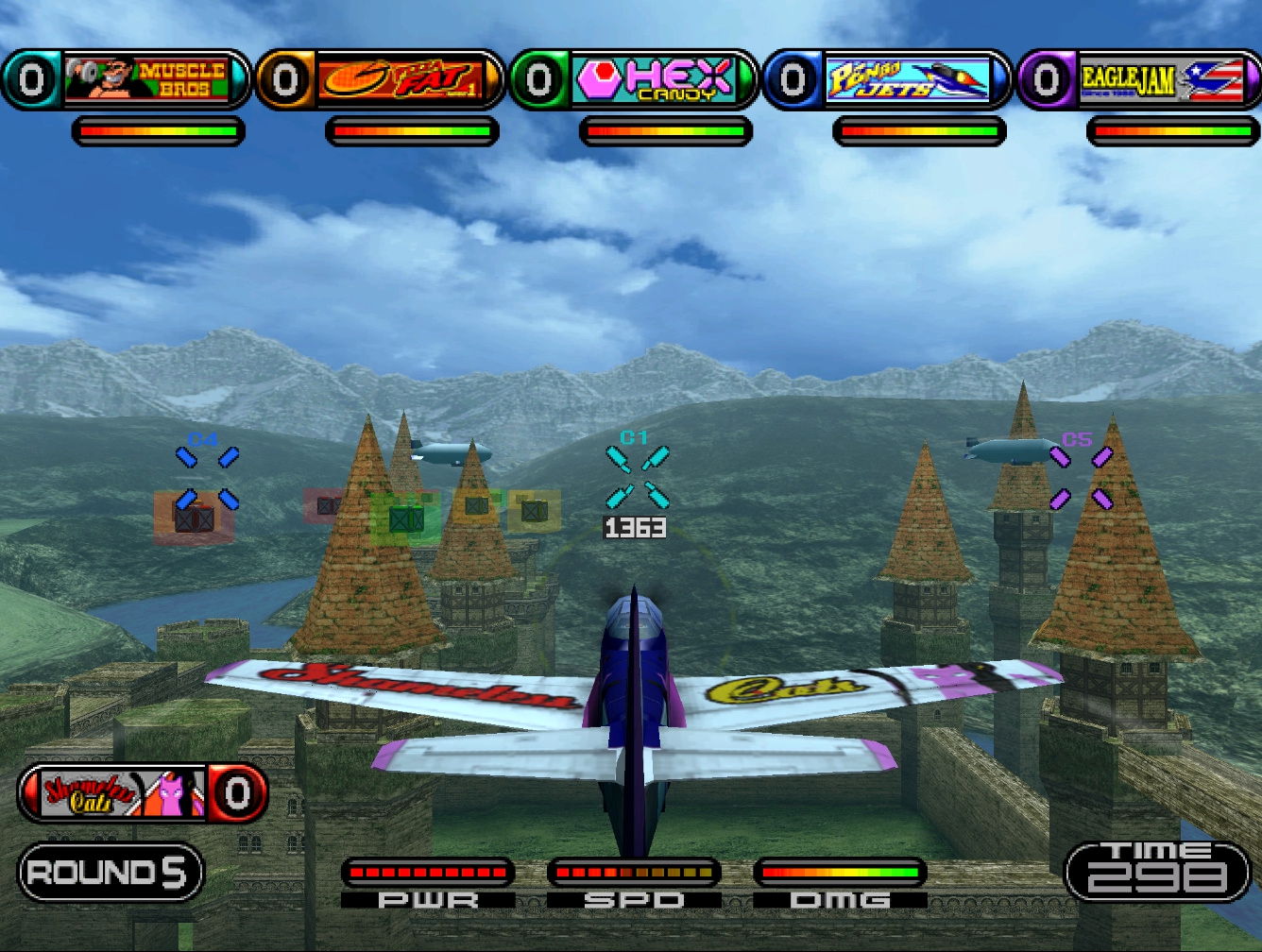 На выбор давались четыре персонажа и четыре арены. Задача игры до банального проста – взрывать самолёты противника до полного уничтожения команды. В боях задействованы не только реальные игроки, но и компьютер. Во время боя можно наблюдать за безтекстурным дирижаблем, а также собирать усиления и улучшения для самолёта через деревянные ящики, которые парят в воздухе. Когда самолёт уничтожается – пилот десантируется.