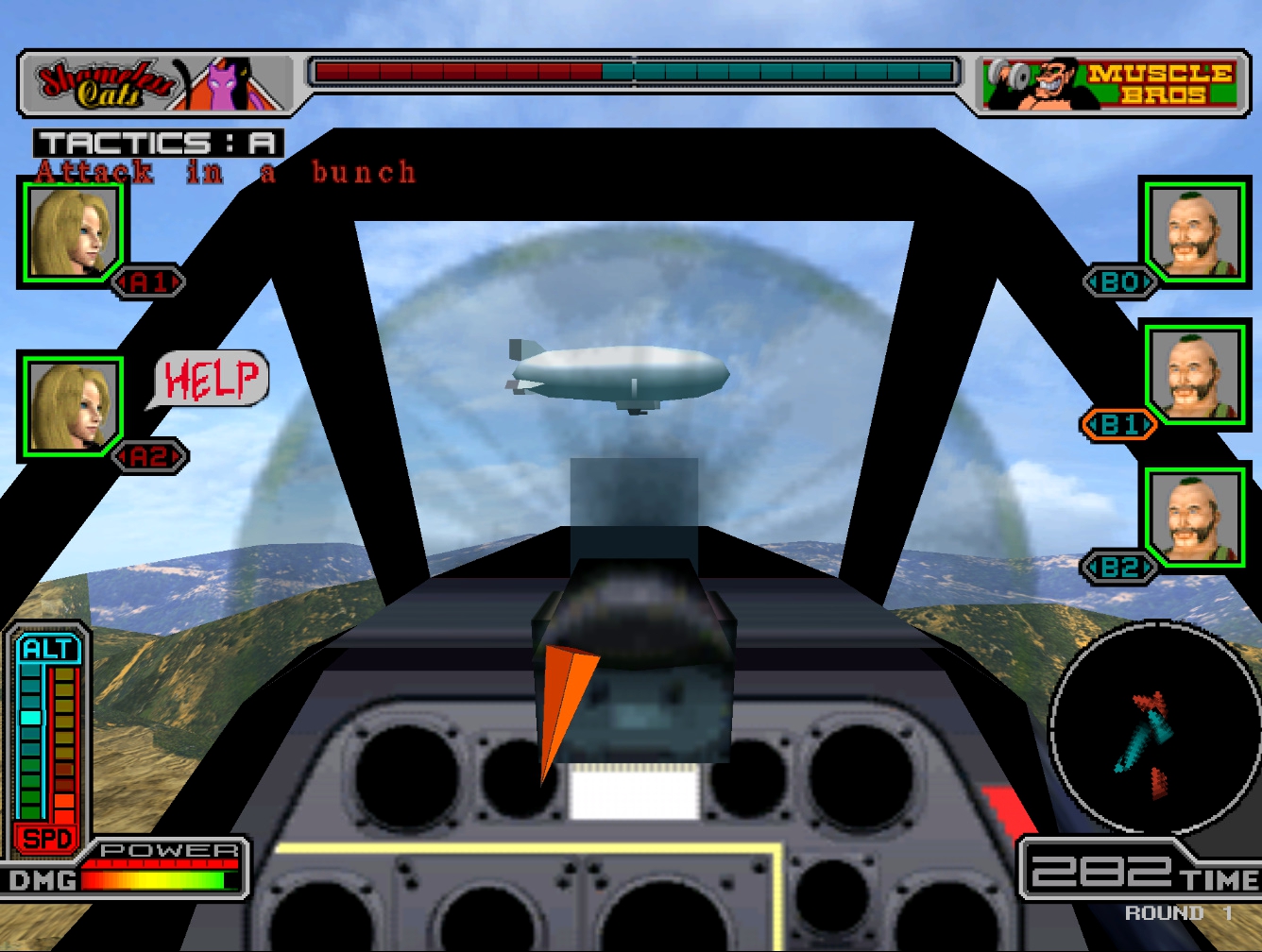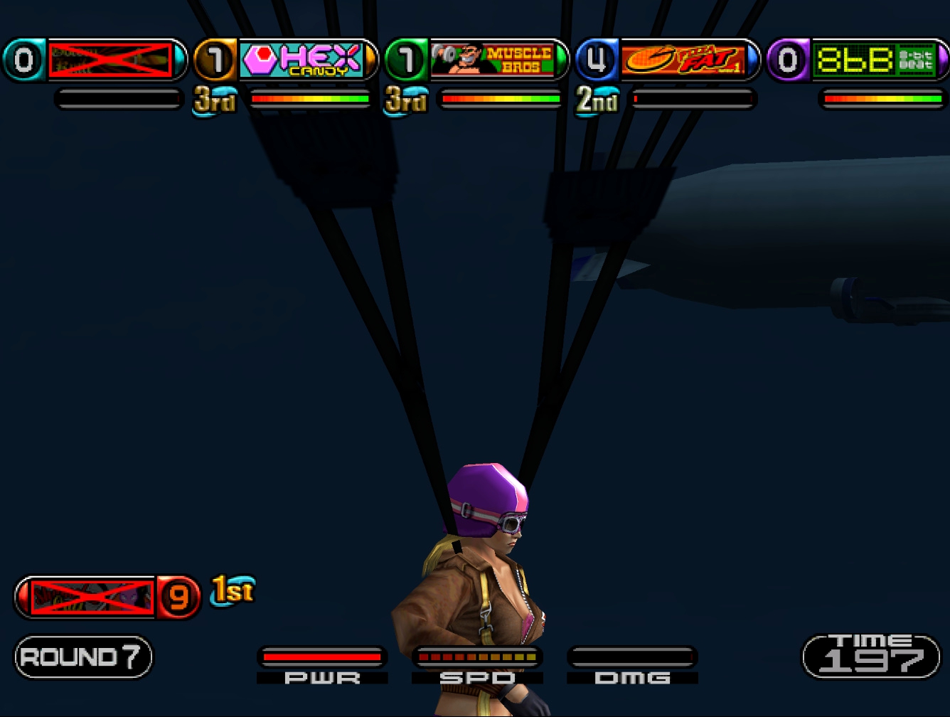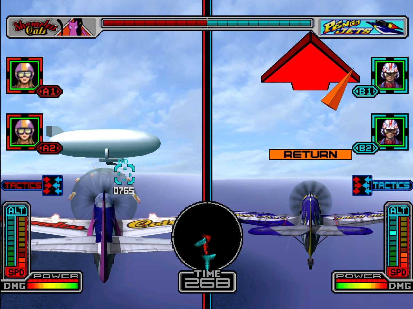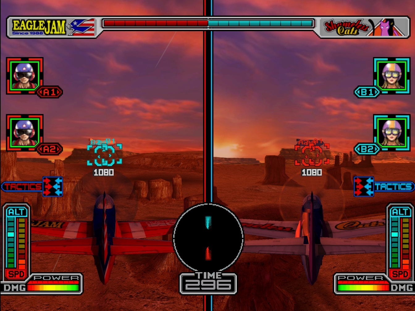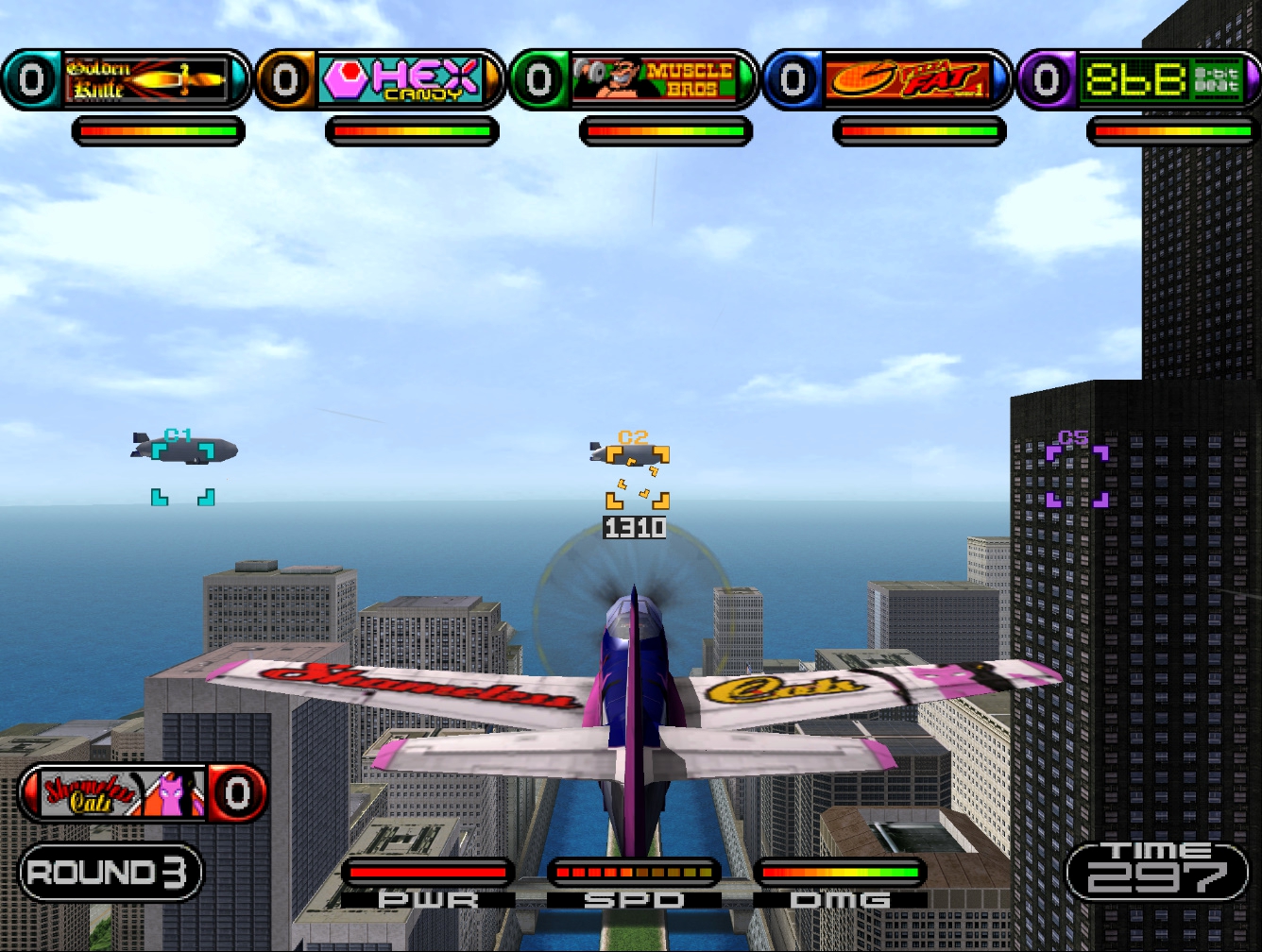 На выбор давались четыре персонажа и четыре арены. Задача игры до банального проста – взрывать самолёты противника до полного уничтожения команды. В боях задействованы не только реальные игроки, но и компьютер. Во время боя можно наблюдать за безтекстурным дирижаблем, а также собирать усиления и улучшения для самолёта через деревянные ящики, которые парят в воздухе. Когда самолёт уничтожается – пилот десантируется.