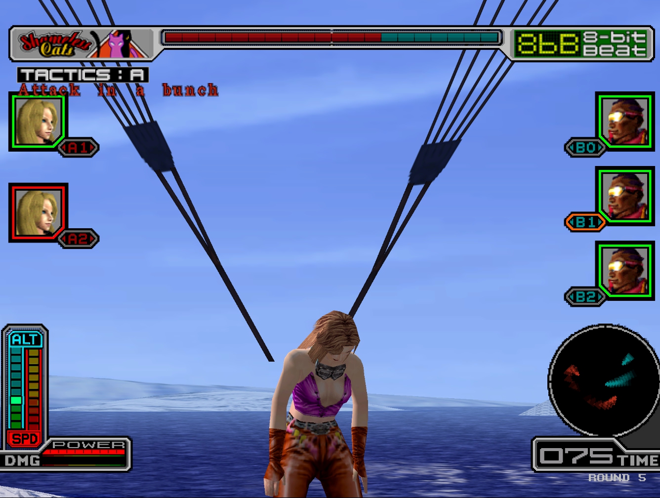 В отличие от прошлых прототипов, в этом появился режим "шанса", при активации которого прямо во время боя мы можем на автомате уничтожить противника сев ему на хвост. А также, чтобы открыть всех персонажей – надо несколько раз пройти режим чемпионата.