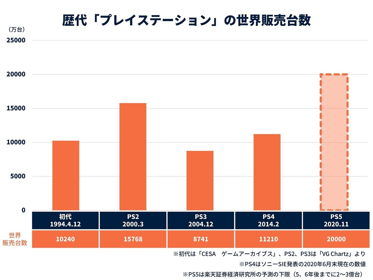 Обозреватель Bloomberg Japan Такаши Мотидзуки обратил внимание на отчет японской исследовательской и аналитической компании Rakuten Securities Economic Research Institute, посвященный перспективам PlayStation 5. В компании полагают, что в ближайшие 5-6 лет продажи консоли могут достичь 200-300 миллионов экземпляров.
