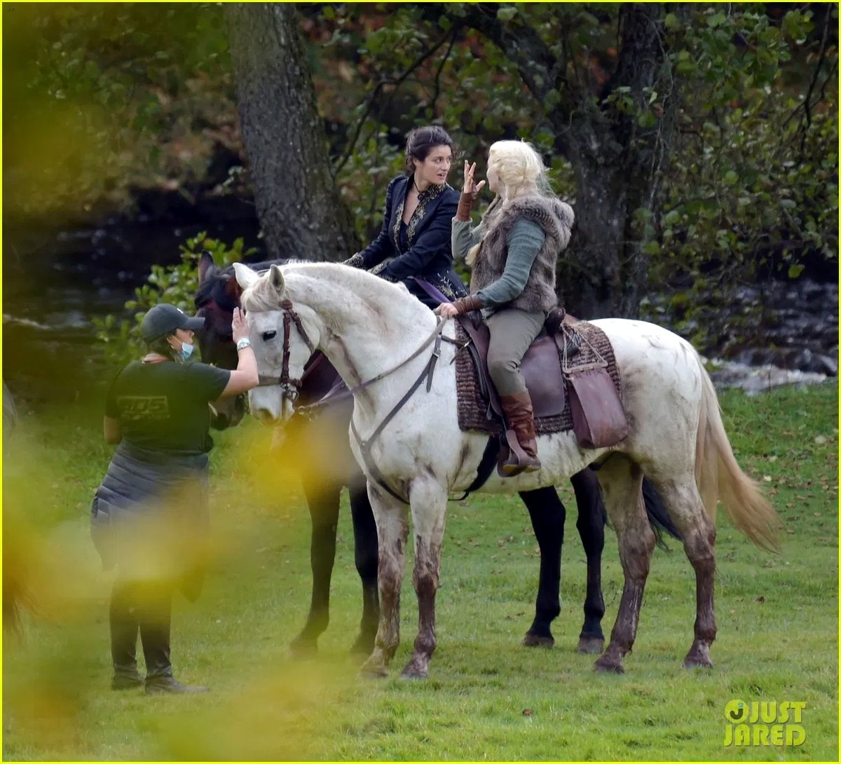 Фотографам Just Jared удалось заснять рабочий процесс на съемочной площадке «Ведьмака». Фактически это продолжение вчерашней серии кадров от Daily Mail: Фрейя Аллан и Анья Чалотра, играющая Цири и Йеннифер, снимаются где-то в полях и ездят верхом.