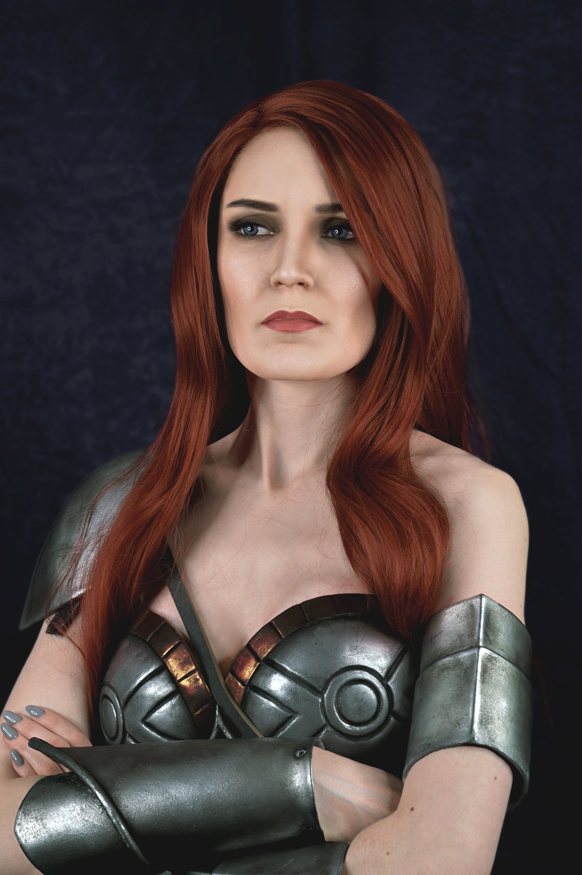 Над еще двумя образами работают Ксения Надарова, более известная как Яльга, и Александра Бойчук, slowpenguin. Ксения экспериментирует с Королевой Мэйв; это тестовая версия, доспех на самом деле собран из фрагментов другого наряда.