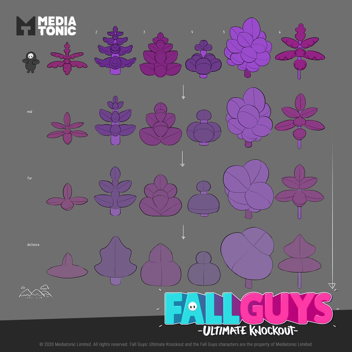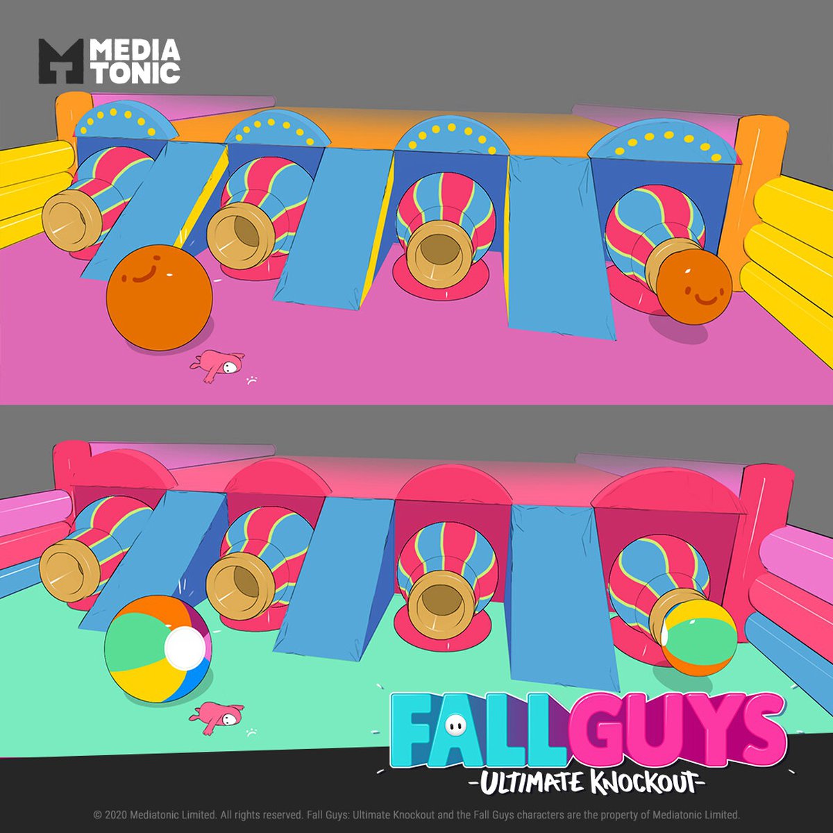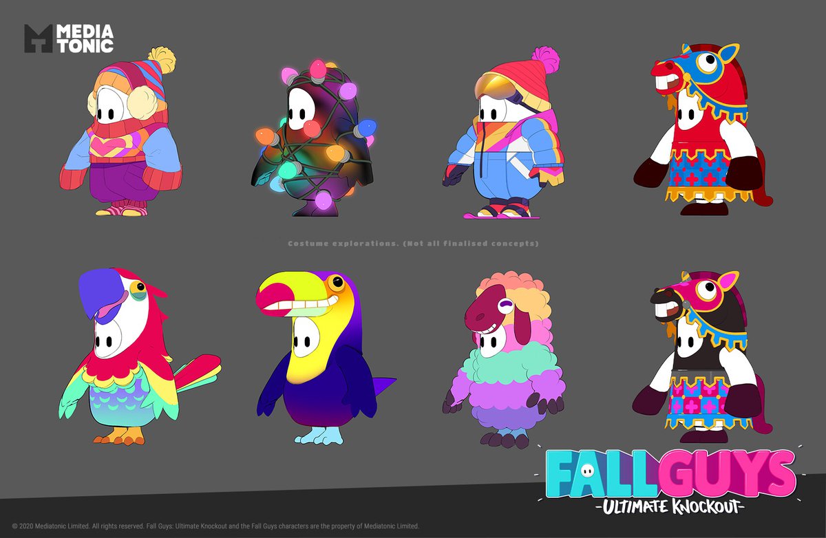 Художники студии Mediatonic, работавшие над Fall Guys, начали выкладывать концепт-арты и рендеры, созданные в ходе разработки игры. В их профилях на ArtStation можно отыскать наброски костюмов, фрагменты испытаний и необычные идеи, не вошедшие в Fall Guys.