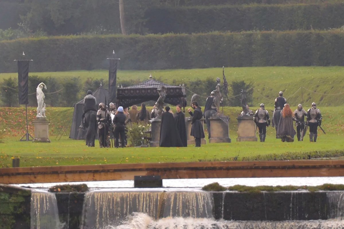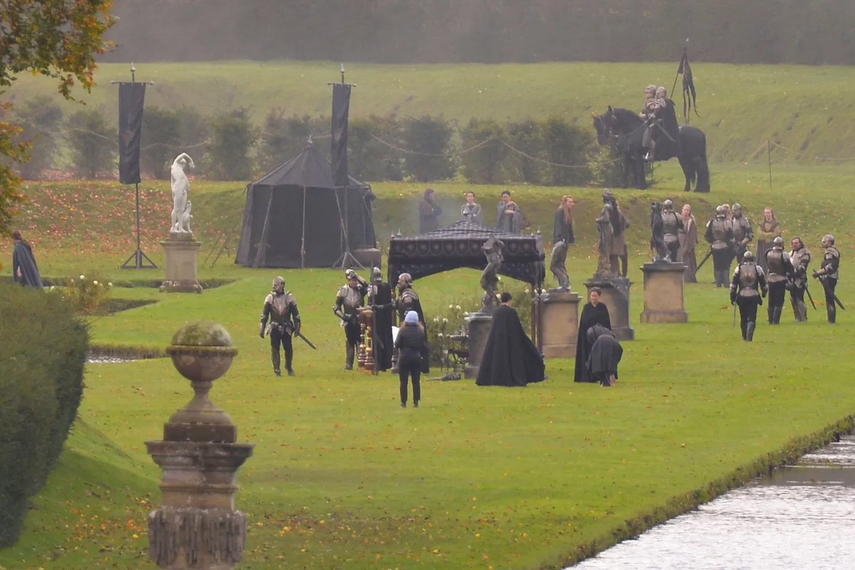 Появилось множество фотографий со съемочной площадки второго сезона «Ведьмака». Сейчас сериал снимают на руинах британского аббатства Фаунтинс: здесь разбит нильфгаардский лагерь, где, видимо, проводятся встречи с эльфами.