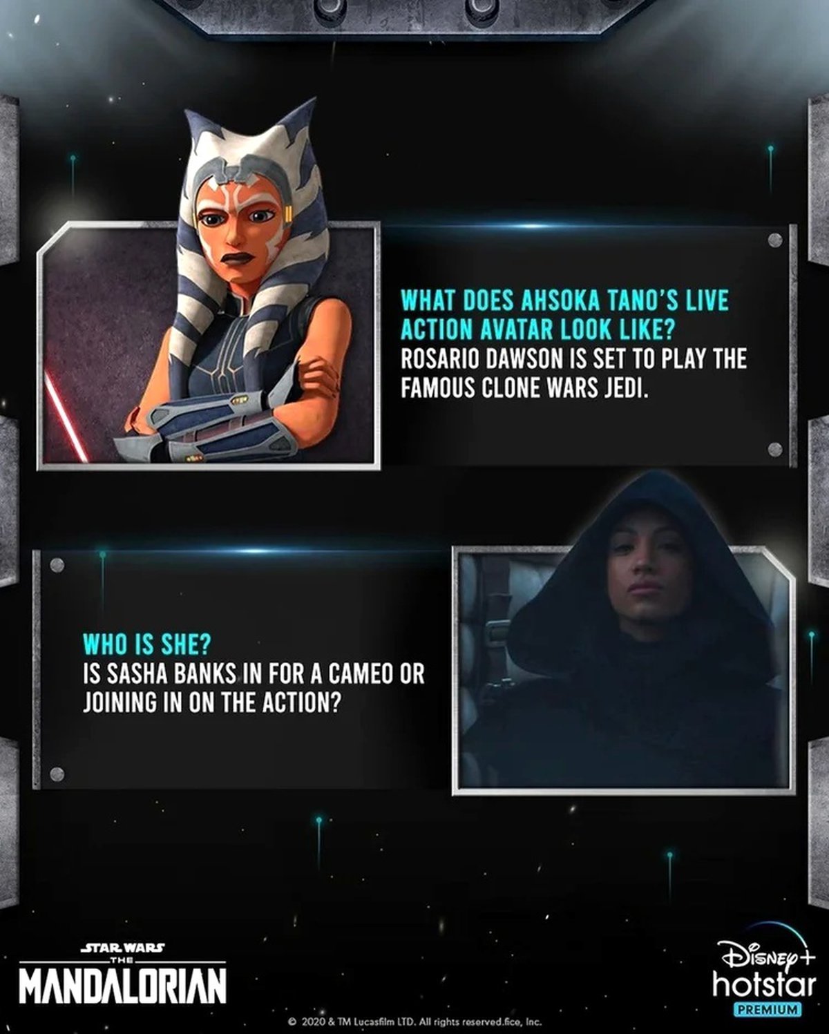 Асока Тано в первом эпизоде второго сезона не появляется. Зато после премьеры сезона официальный Instagram-аккаунт индийского подразделения Disney опубликовал постер, где прямо сообщается: Тано будет одним из персонажей шоу и ее играет именно Розарио Доусон.