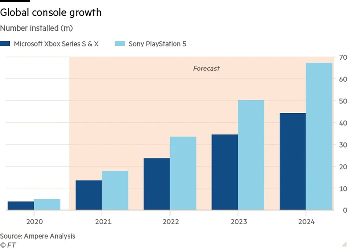 Ожидается, что именно PlayStation 5 станет самой продаваемой консолью нового поколения. По оценке Ampere Analytics, к концу 2024 года может быть продано почти 70 миллионов PlayStation 5 и порядка 45 миллионов Xbox Series обеих модификаций.