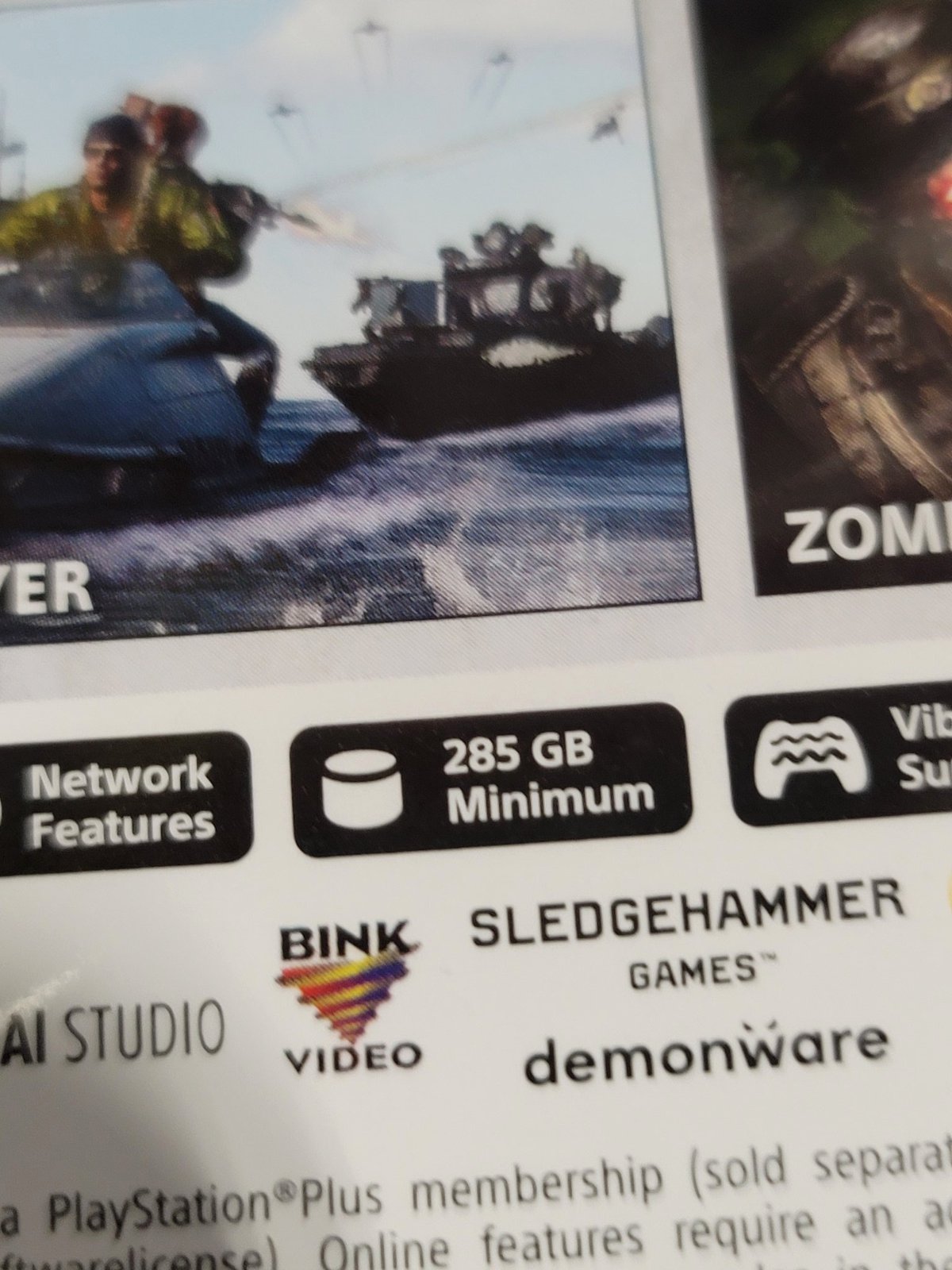 Пользователь твиттера под ником Kaaution опубликовал фотографию оборотной части бокса Call of Duty Black Ops Cold War для PlayStation 5. Здесь указан минимальный размер дистрибутива игры — 285 гигабайт.