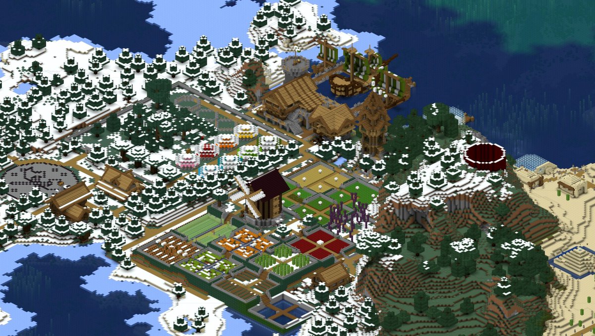 С дворцами, тропическими островами, деревнями, замками и столбами до неба.