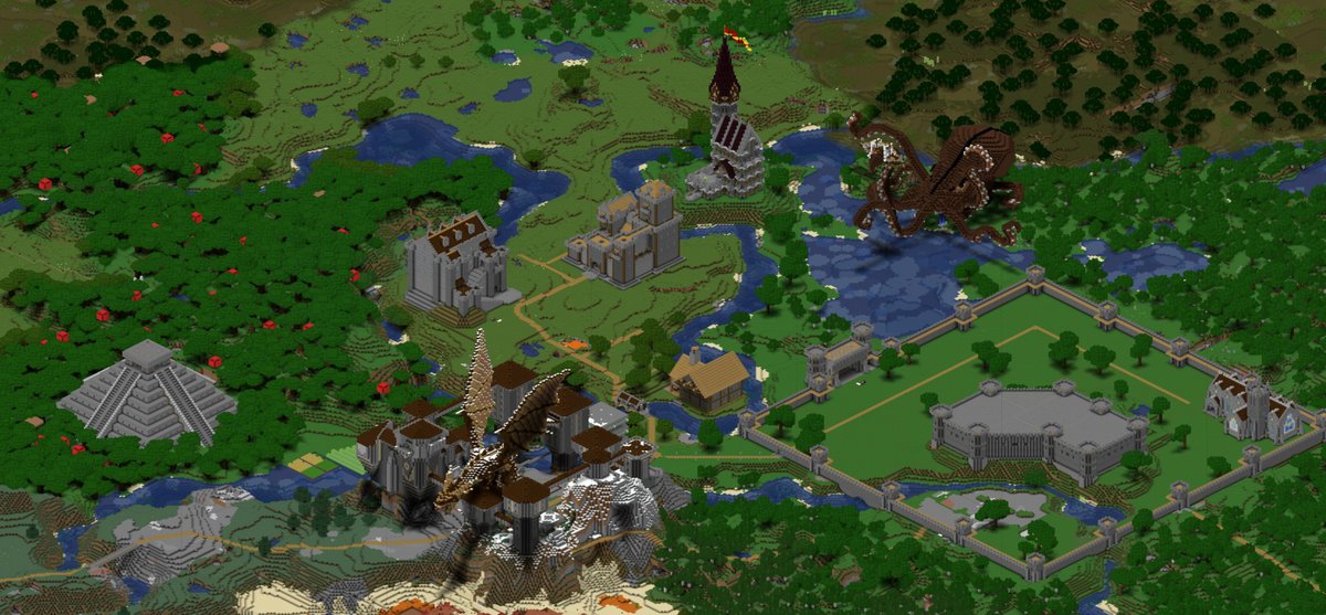 Судя по размерам мира и количеству построек, сервер существует достаточно давно. Он наполнен дворцами, средневековыми замками, гигантскими футуристическими особняками и постройками, офисными зданиями и целыми деревнями.