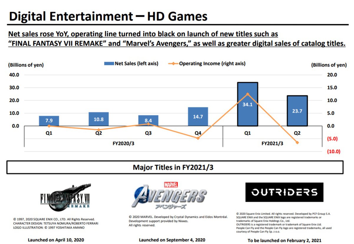 Square Enix выпустила отчет за первое полугодие финансового года, закончившееся 30 сентября 2020 года. Выручка от направления HD Games — так в компании называют масштабные ААА-проекты — оказалась ниже ожидание, прибыль ушла в минус.