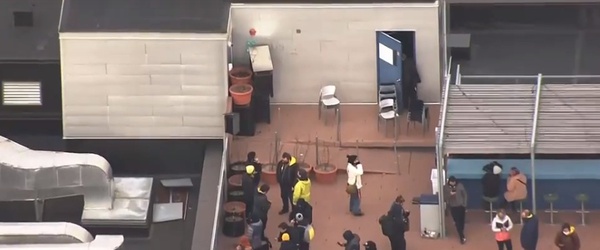 На кадрах с дрона видно, что сотрудники Ubisoft на крыше ведут себя достаточно спокойно. Дверь на лестницу они не закрыли.