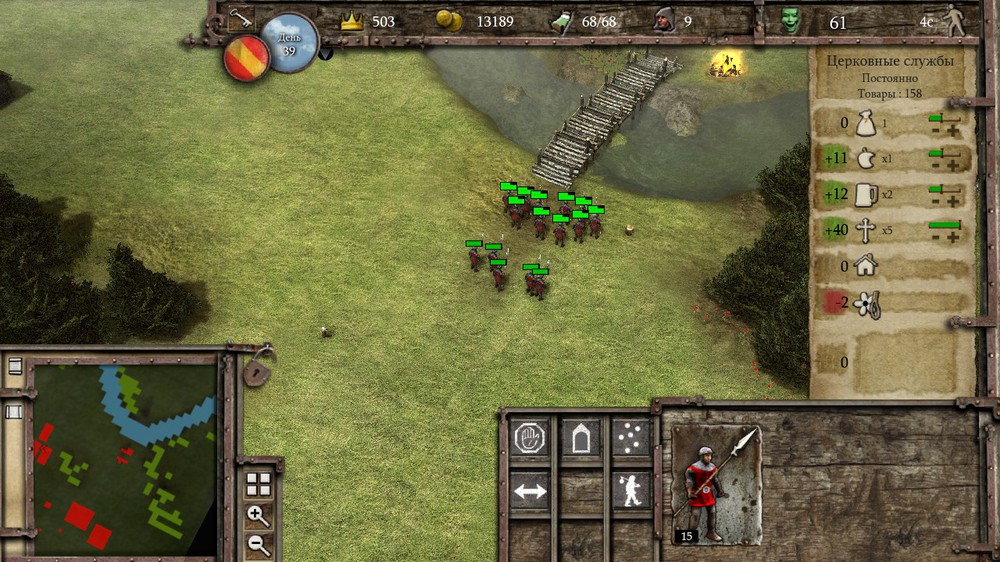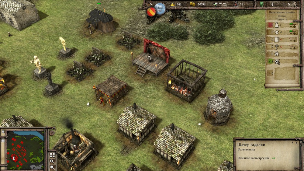 Строения завезли, влияние на популярность есть, но крестьяне не подходят к танцующим медведям, артистам или гадалкам. Влияние на армию тоже имеется, но только в момент подготовки. Больше хп при хорошем правителе, меньше при плохом, а далее показатель здоровья сохраняется. Солдаты продолжат благоволить своему повелителю, не зная, как он душит их жён виселицами.