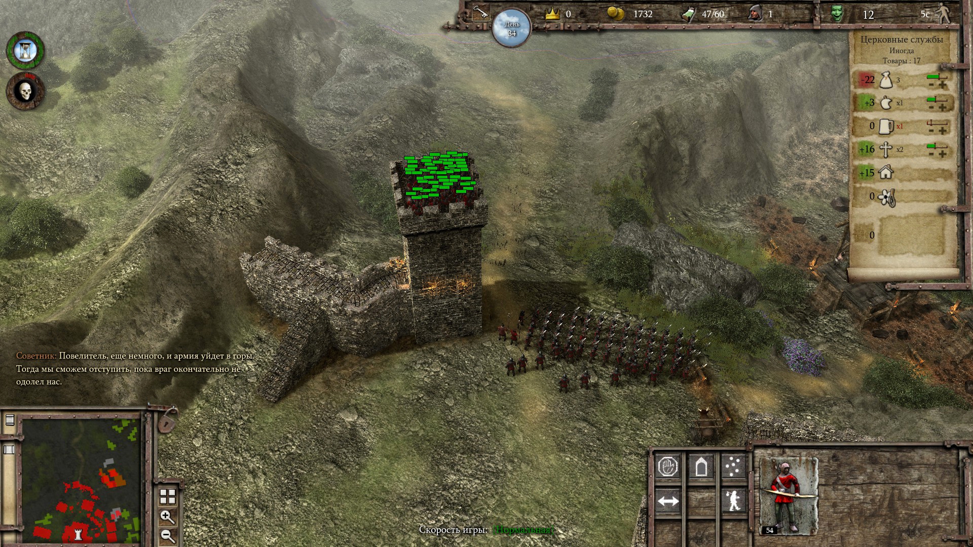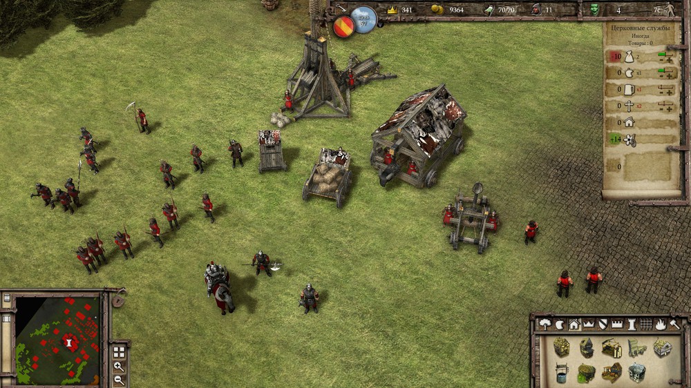Однако читерству этих товарищей позавидуют Барклай и Дракула. Посмотрите на замок Крысы. У него нет еды, я зажал его садики, почти нет добычи дерева, куда должны уходить все деньги? На продовольствие? Нет, он штампует ополченцев пачками, ставит осадные лагеря и вывозит катапульты, что за терпилы живут в его поселении? Там нет ни церкви, ни таверны — это же Де Пюс.