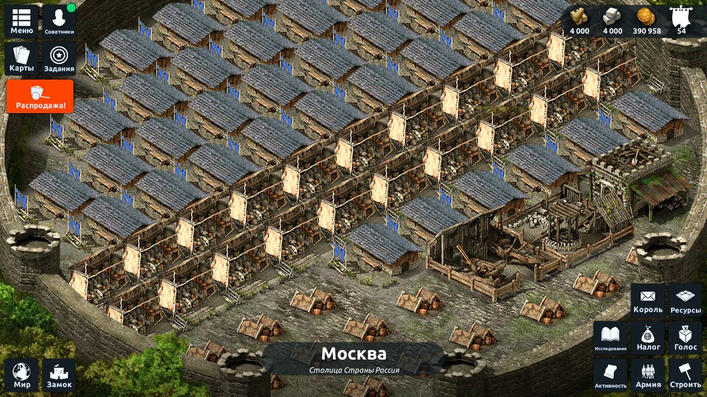 Добыча сырья - самая настоящая ферма mail.ru: ставишь здания и собираешь произведённое нажатием. Тоже самое с местной честью и даже довольствием населения. Да, просто строится трактир и добывает счастье, словно деревяшки или вёдра водички, главное только заходить в игру и подбирать самому. Даже сборщики налогов посылаются собственноручно, к релизу, скорее всего, премиум аккаунт автоматизирует процесс.