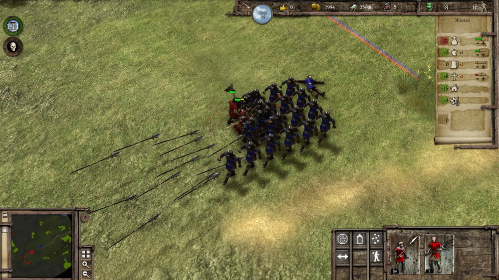 Переделали копейщиков. Они всё ещё метают свои орудия, но ходят медленнее пехотинца (парень с булавой). Особенно потешно выглядит их анимация марша на убой.