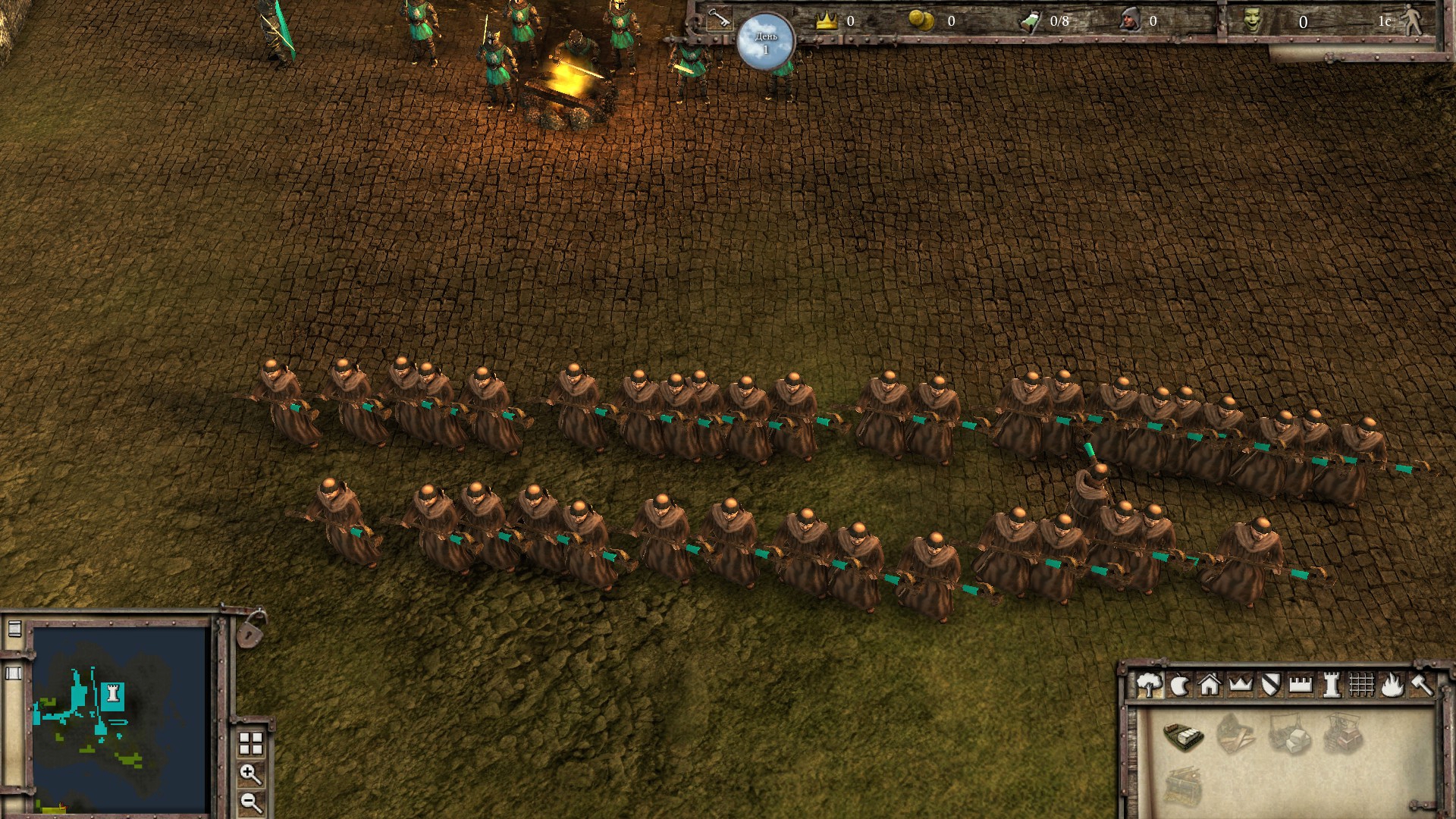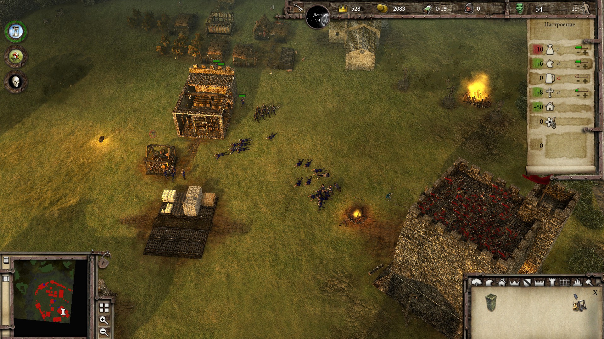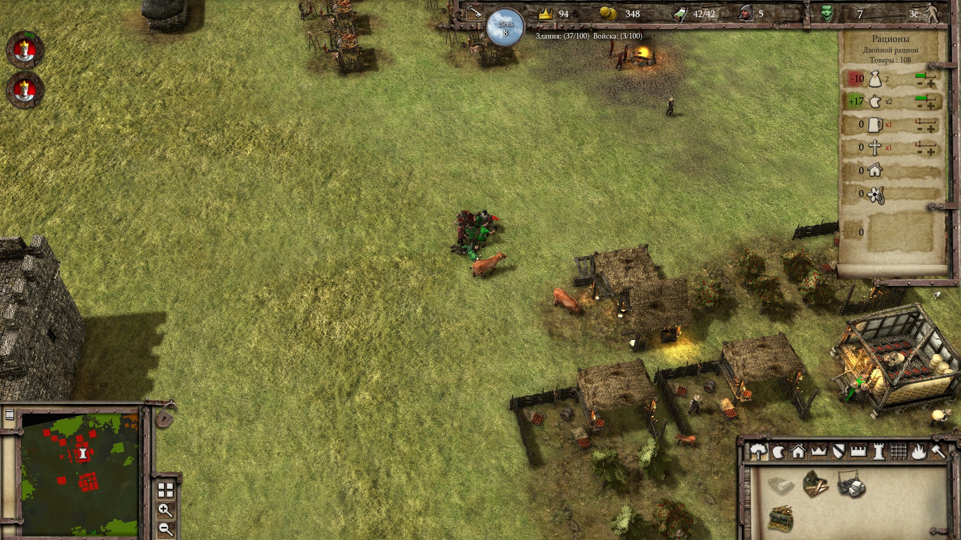 Враги же всегда, словно мобы из tower defense, маршируют к оплоту. По пути они не пытаются разрушать экономику. Это уровень бандитов из песочницы оригинала, но тот же Крыса любил откусить лесопилку. Да и разбойников в Crusader апнули.