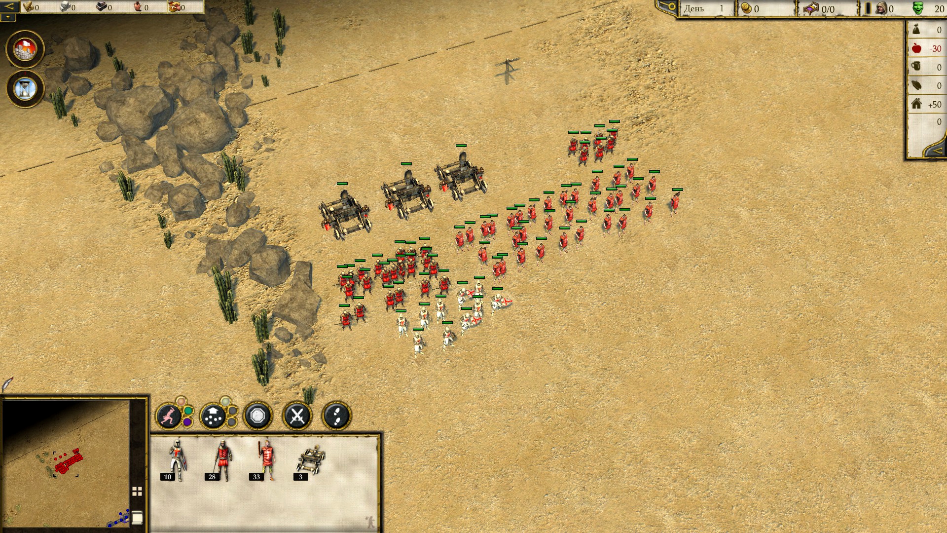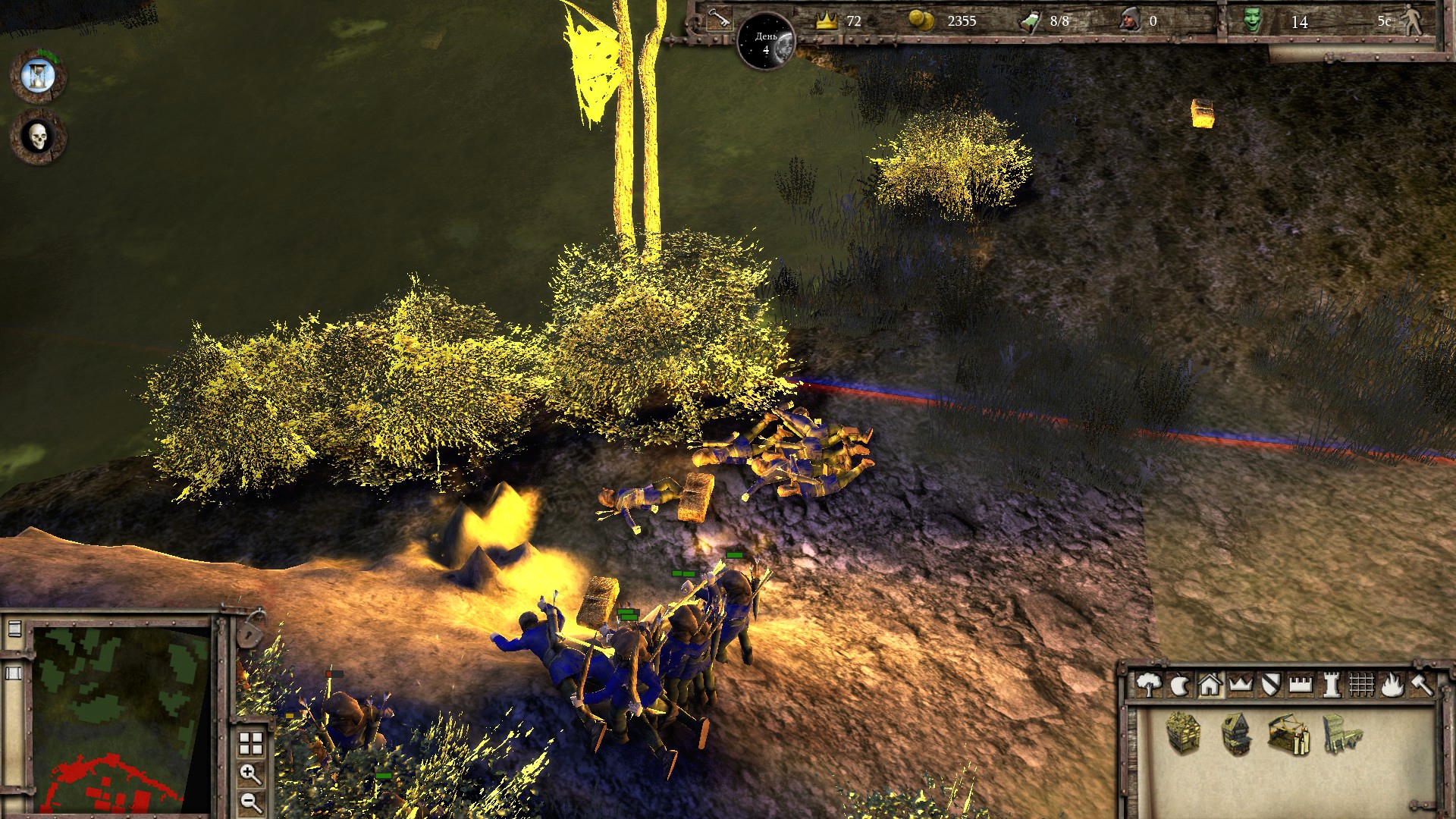Велосипед, наконец-то, изобрели. Войска отправляются по миникарте, точка сбора казармы присутствует, правда часть бойцов при её достижении может внезапно побежать обратно баракам. Не всё сразу, shift не работает. Зато юниты не заостряют в почве, они преспокойно ходят друг в друге.