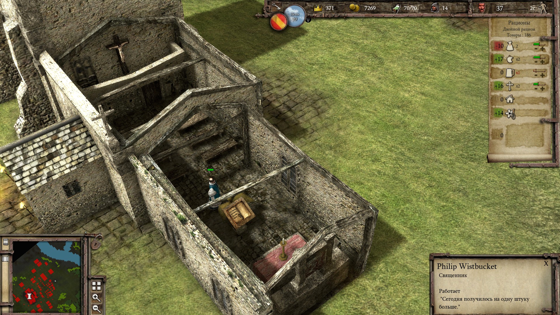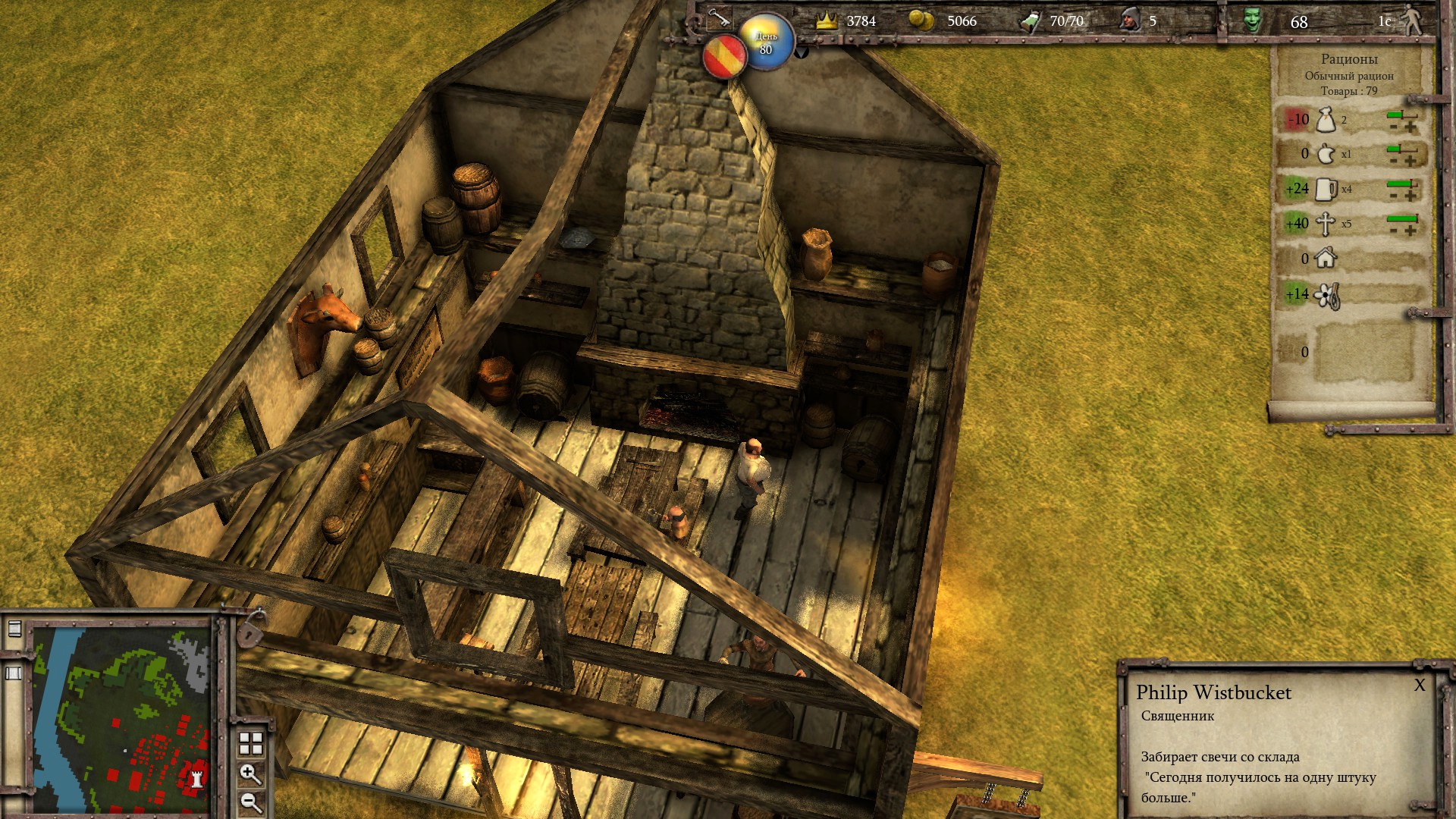 Но начинка сгнила окончательно. Систему кнута и пряника вырезали полностью, в трактир теперь не ходят даже старикашки, а священник благословляет дома, но он один, церковь всё единоразовая постройка, только внутрь неё даже заглянуть нельзя. К тому же у поселенцев уже и диалоги отсутствуют, хотя бы имена не забрали.