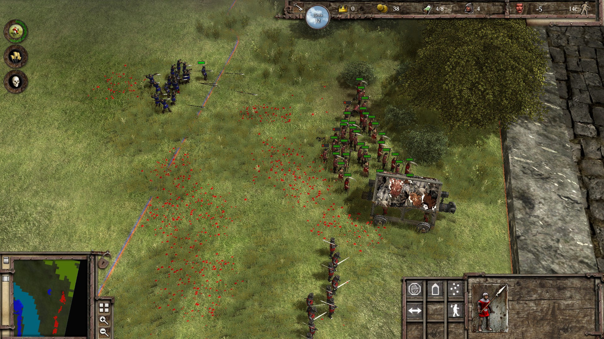 Кстати, кожаную броню упразднили. Арбалетчики ходят в железной, а булавщики ни в какой. Серьёзные изменения баланса на самом деле, мне не зашло, некоторые миссии всё ещё предполагают копьеносцев, как мясо, но с такой скоростью ходьбы это сложно реализовать.
