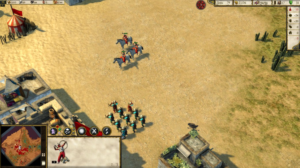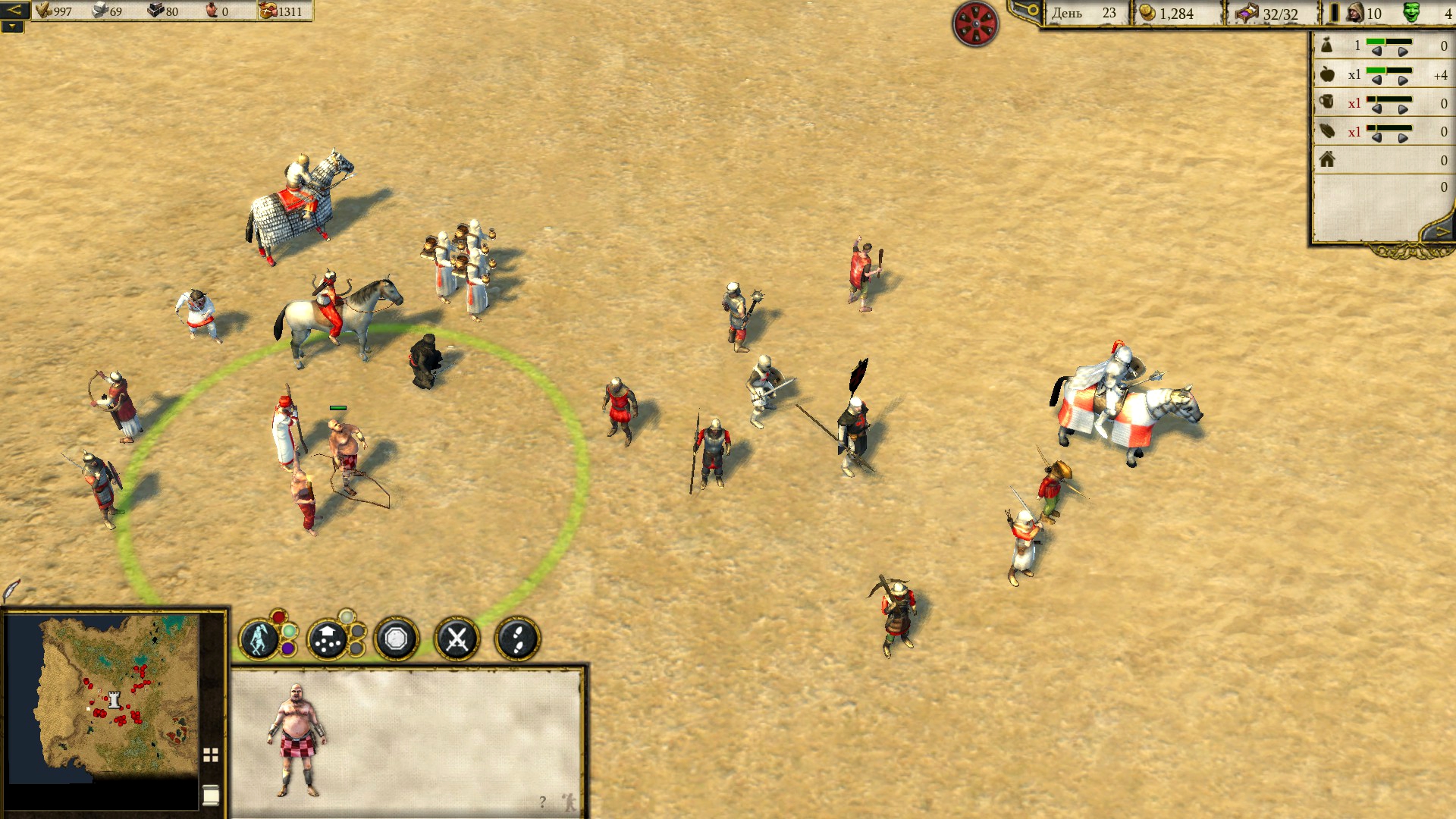 Компьютерный интеллект стал умнее в плане приказов, но не реагирования. Вот я почти безнаказанно расстреливаю арбалетчиков конницей.