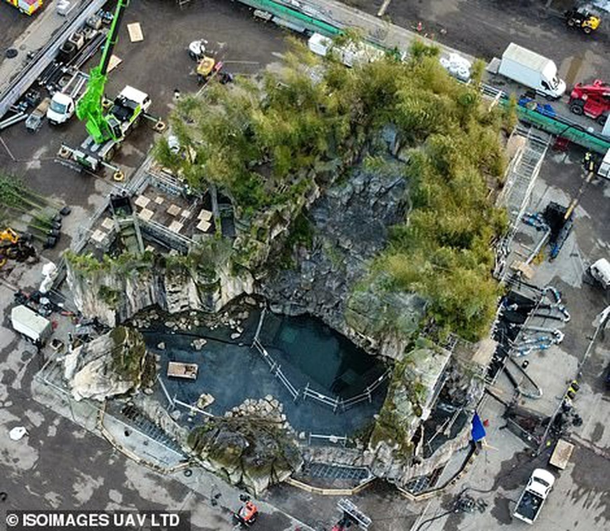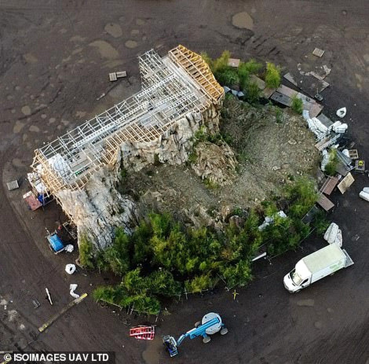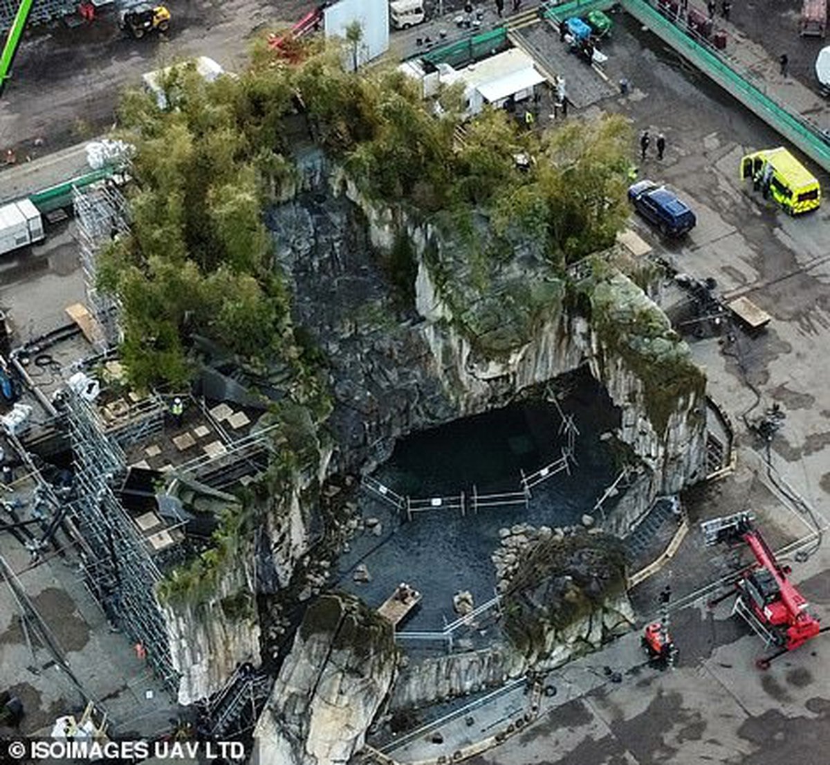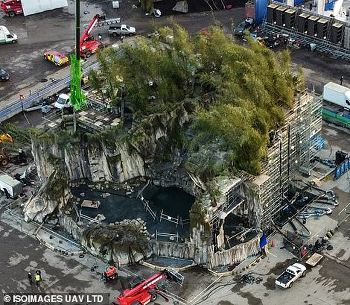 Среди них оказалось большое искусственное сооружение, напоминающее классическую пещеру Бэтмена. Декораторы построили целый каменный остров: с деревьями, искусственными скалами и небольшим водоемом.