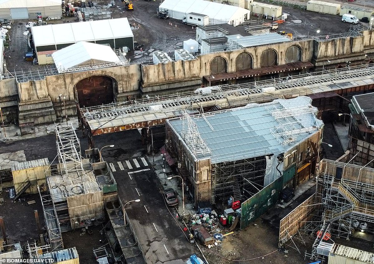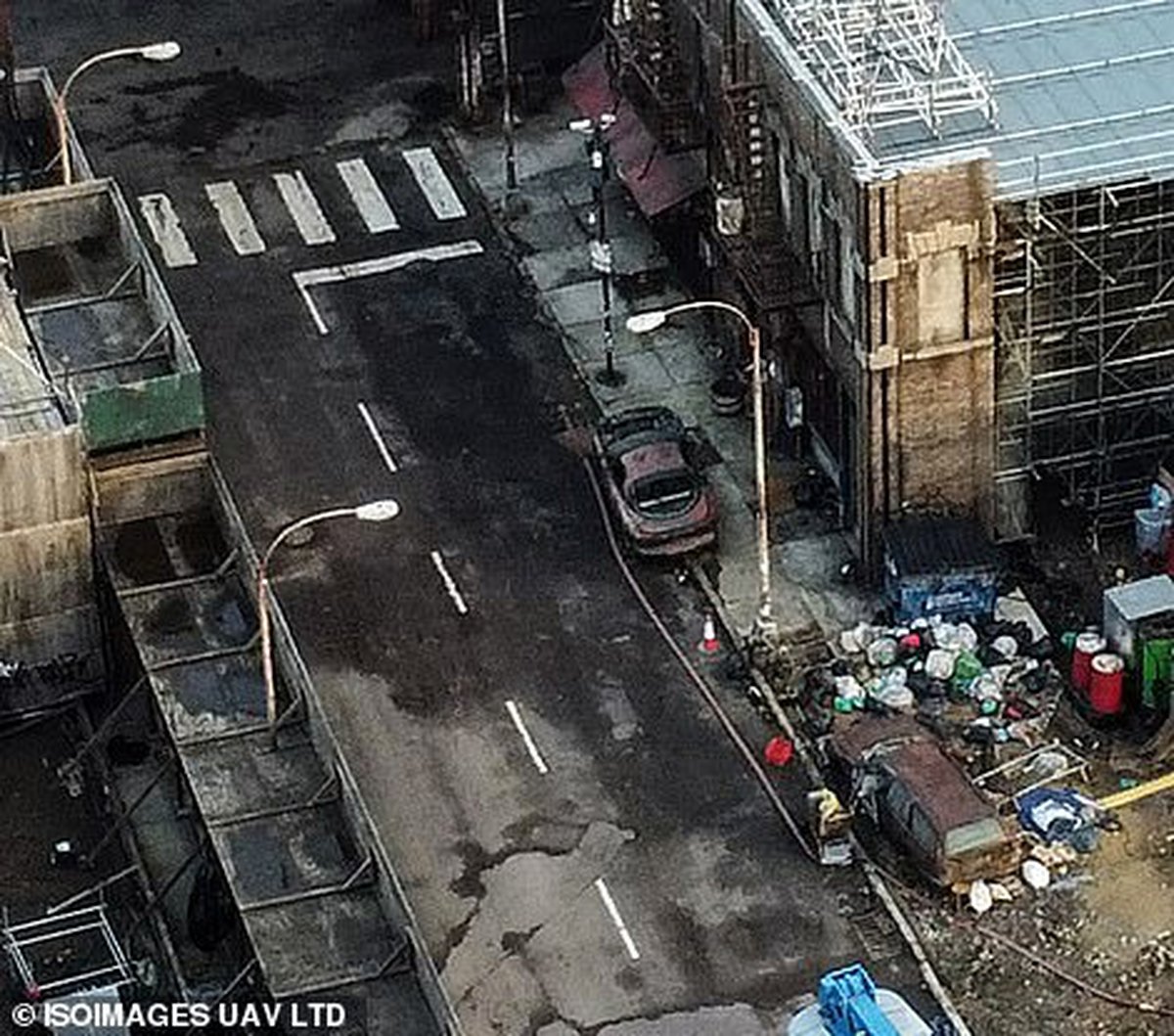 «Бэтмена» Мэтта Ривза снимают не только на натуре. Для съемок некоторых сцен были построены целые фрагменты Готэм-Сити: с улицами, эстакадами и площадями. Некоторые из декораций удалось заснять с дрона.