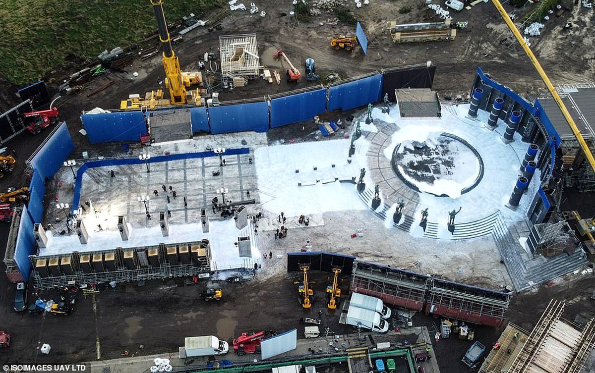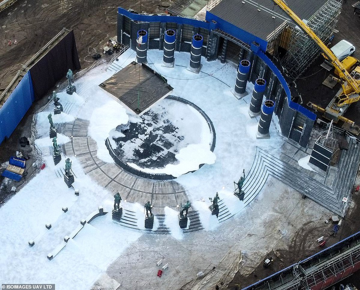 На нескольких фотографиях можно увидеть процесс возведения острова. Другие показывают степень детализации улиц Готэма: с горами мусора, сгоревшими зданиями и брошенными машинами. Наконец, у нас есть некая снежная площадь, окруженная статуями.