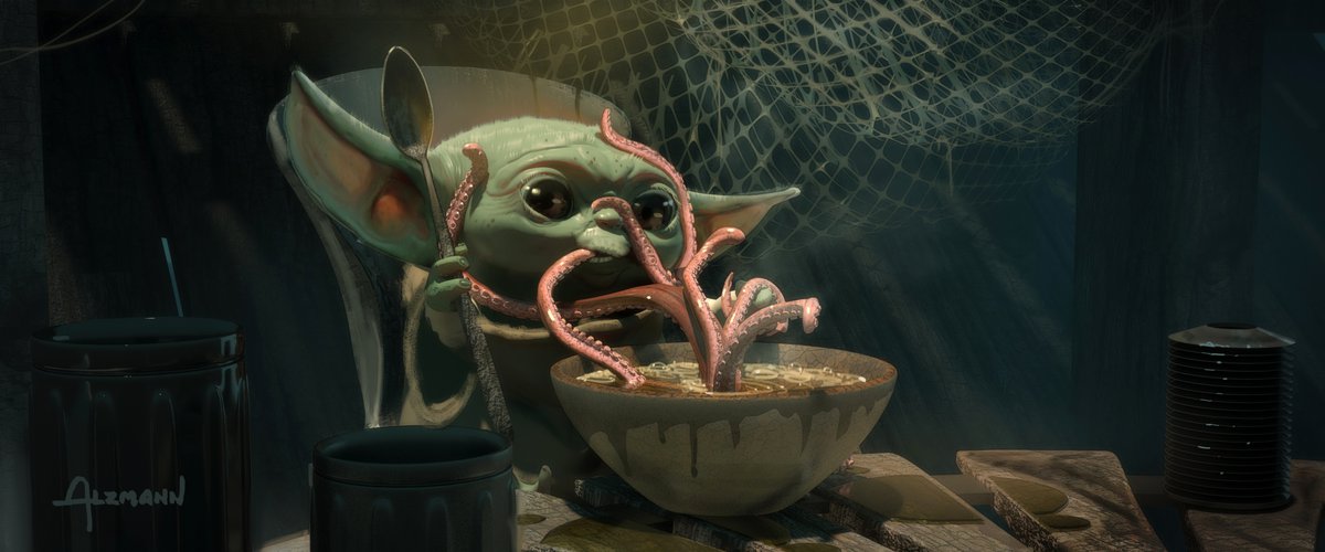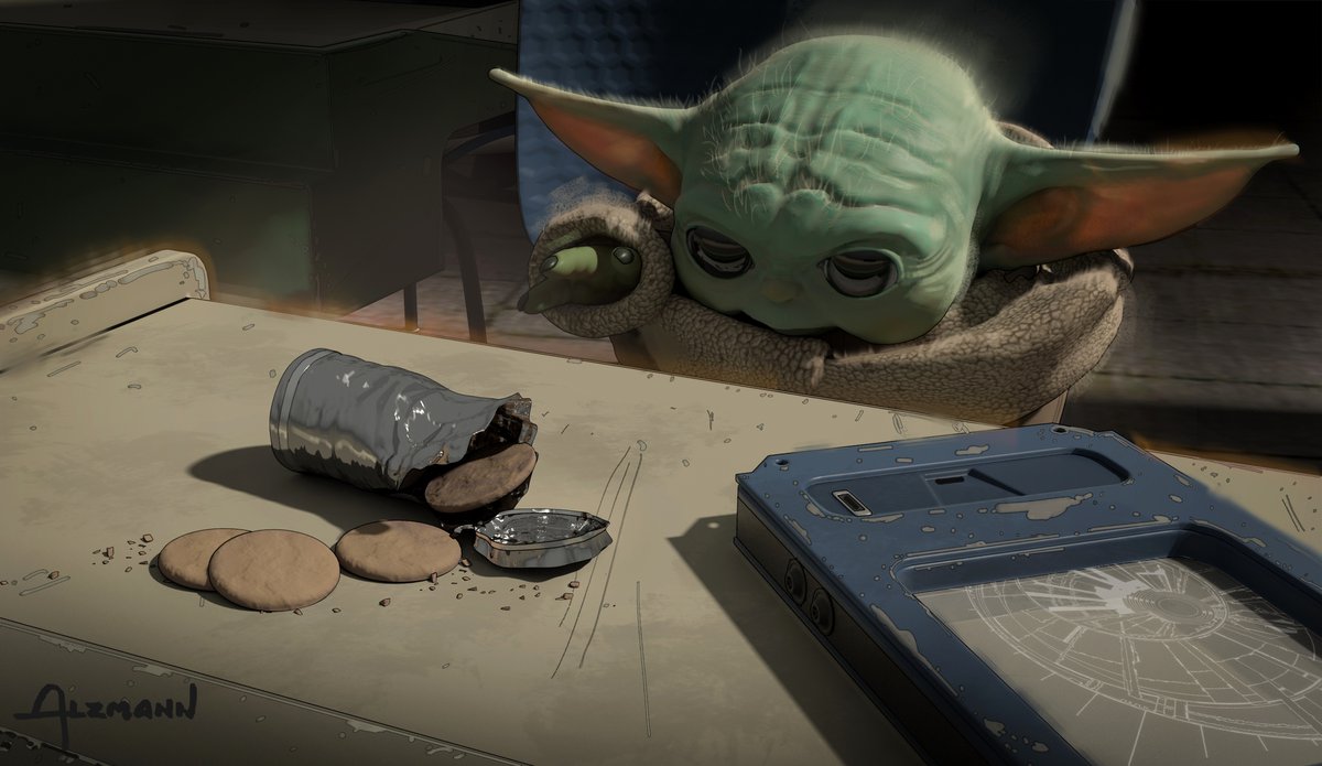 Особых спойлеров здесь нет: примерно эти же сцены, за некоторыми исключениями, показывали в трейлерах. Зато есть много достаточно милых артов — например, с малышом, решившим пообедать или попрактиковаться в использовании Силы.