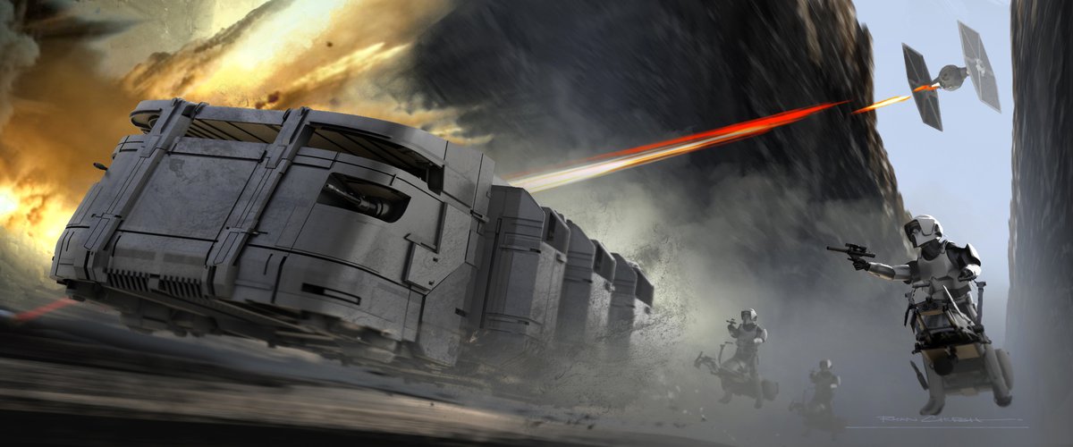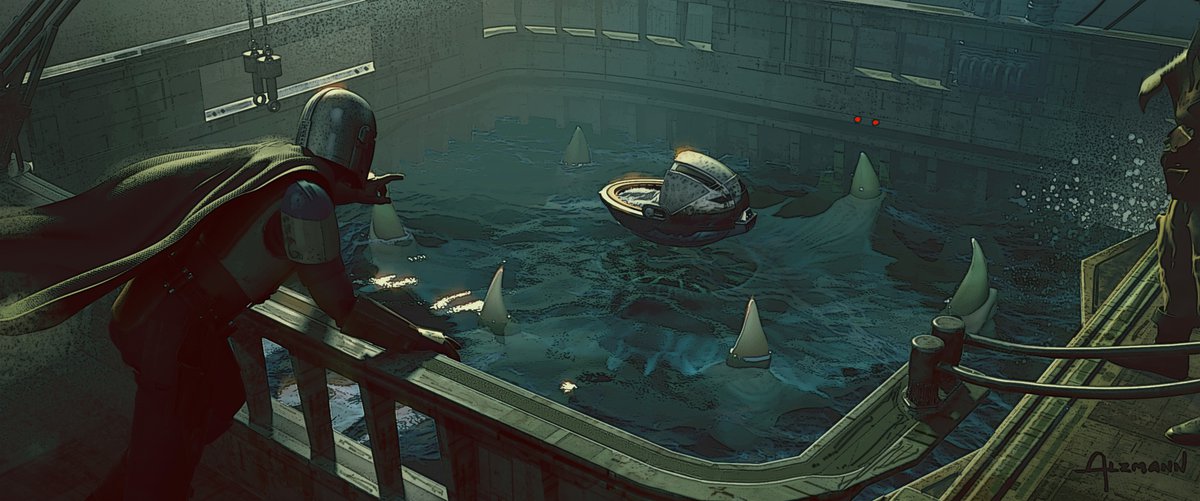 Интересный момент: некоторые арты выглядят так, словно создавались на основе черновых моделей, подготовленных для виртуальных декораций сериала. Многие декорации второго сезона «Мандалорца» по-прежнему виртуальные: их, как и на съемках первого сезона, просто выводят на огромные экраны.