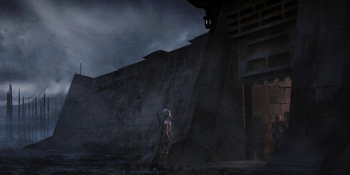 У пятой серии второго сезона, где Дин Джарин и «маленький Йода» наконец встречают джедая Асоку Тано, таких концептов десять. Одни — например, с домом Морган Эльсбет — дают возможность детальнее рассмотреть мелкие детали. Другие показывают альтернативные варианты знакомых сцен.