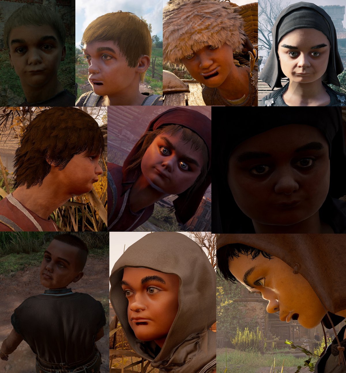 Лица второстепенных персонажей в Assassin’s Creed Valhalla генерируются процедурно: невозможно вручную смоделировать внешность сотен NPC. С взрослыми жителями Англии и Норвегии игровой движок справляется неплохо, дети — другое дело.