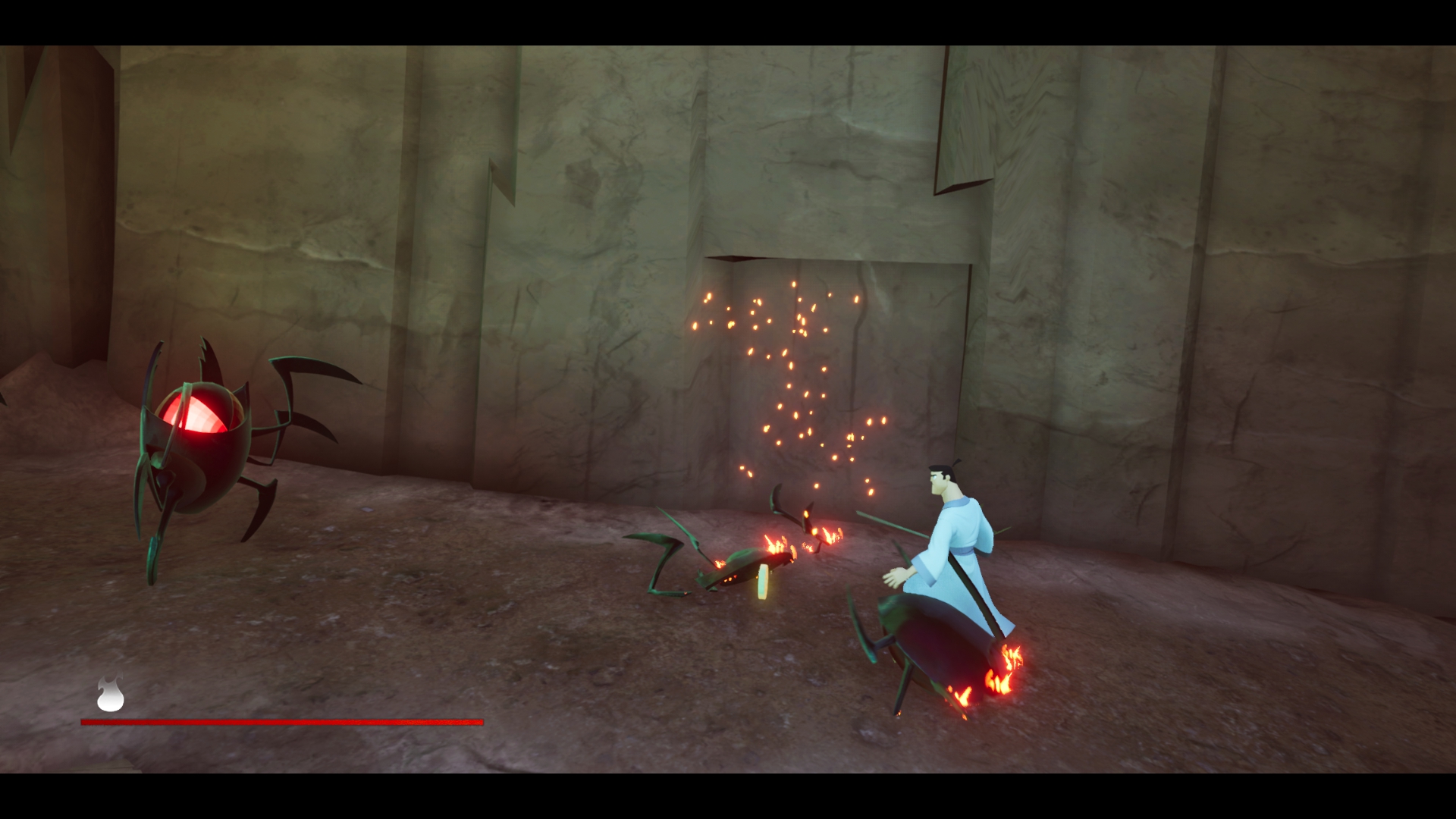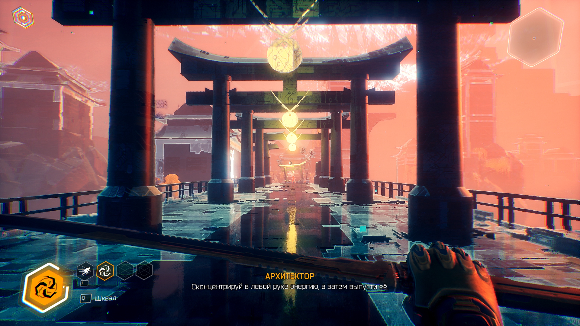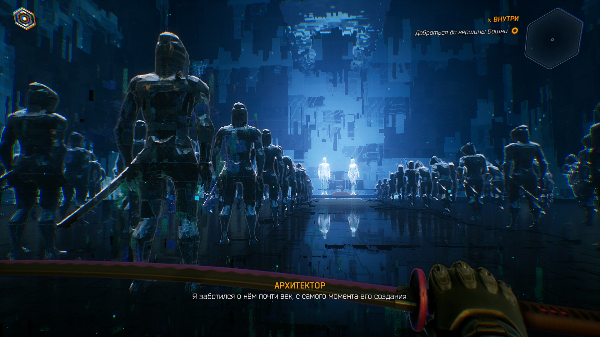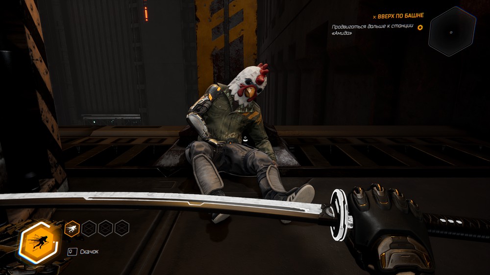 Итак, геймплейно это Hotline miami с паркуром Mirrors edge/Dying Light. Что игрок, что враги отлетают с одного попадания. По началу, все относительно легко, знай себе прыгай с стены на стену и руби врагов, однако потом начинаются проблемы. Врагов становится больше и они делают больно. В противовес врагам, игрок тоже учит новые приемы типо джедайского отбивания пуль или способности управлять врагом, переманивая его на свою сторону, ещё есть прокачка пассивных статов в виде эм... Тетриса ?