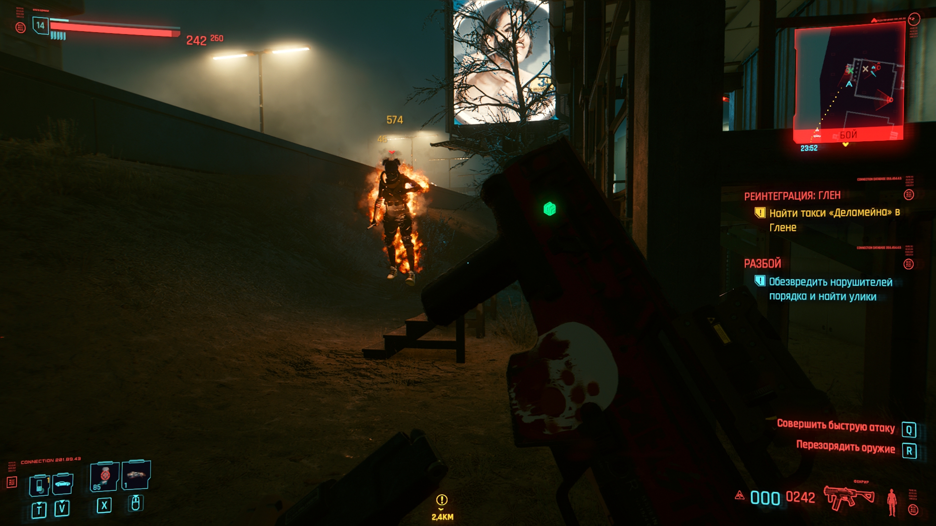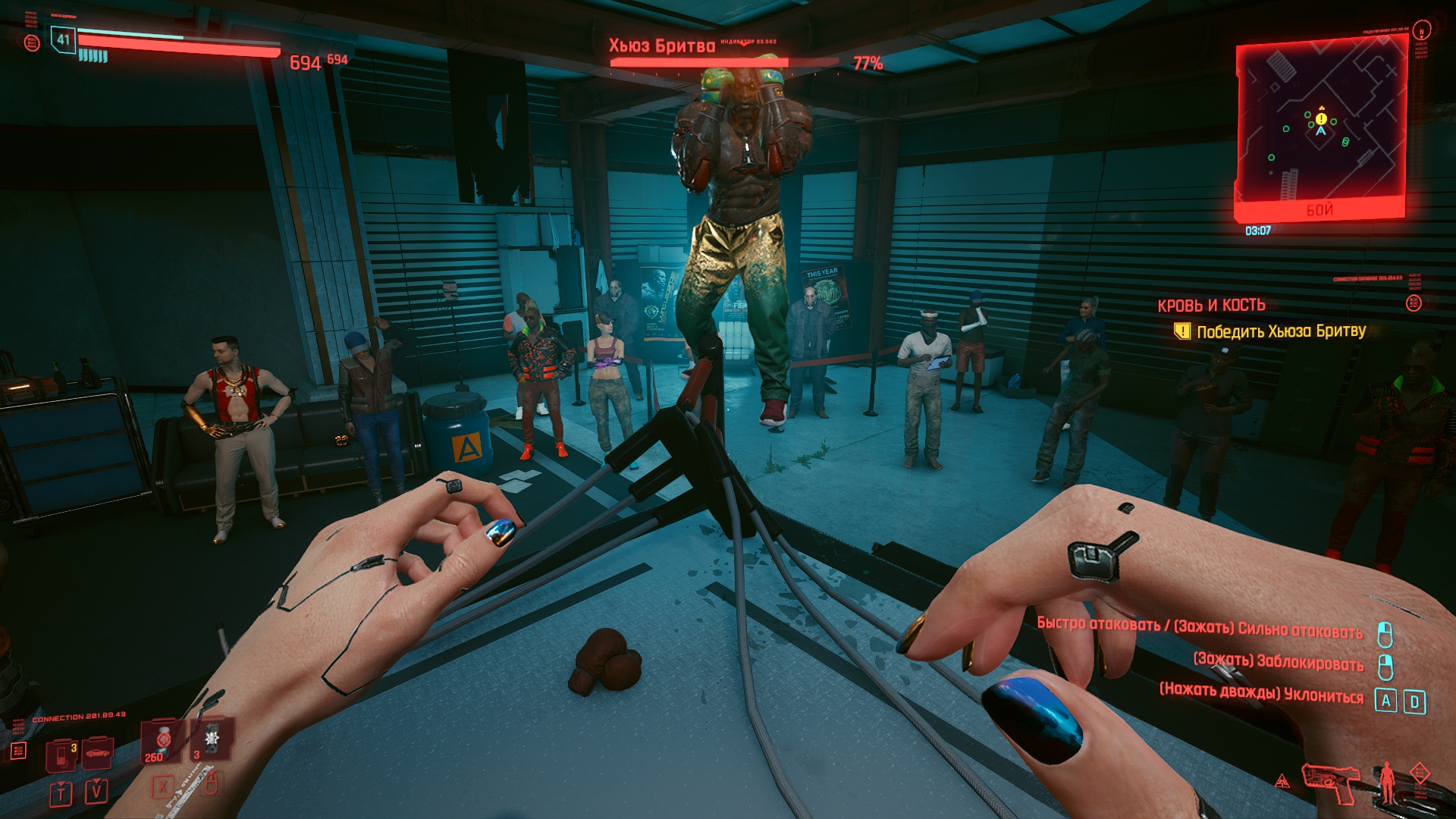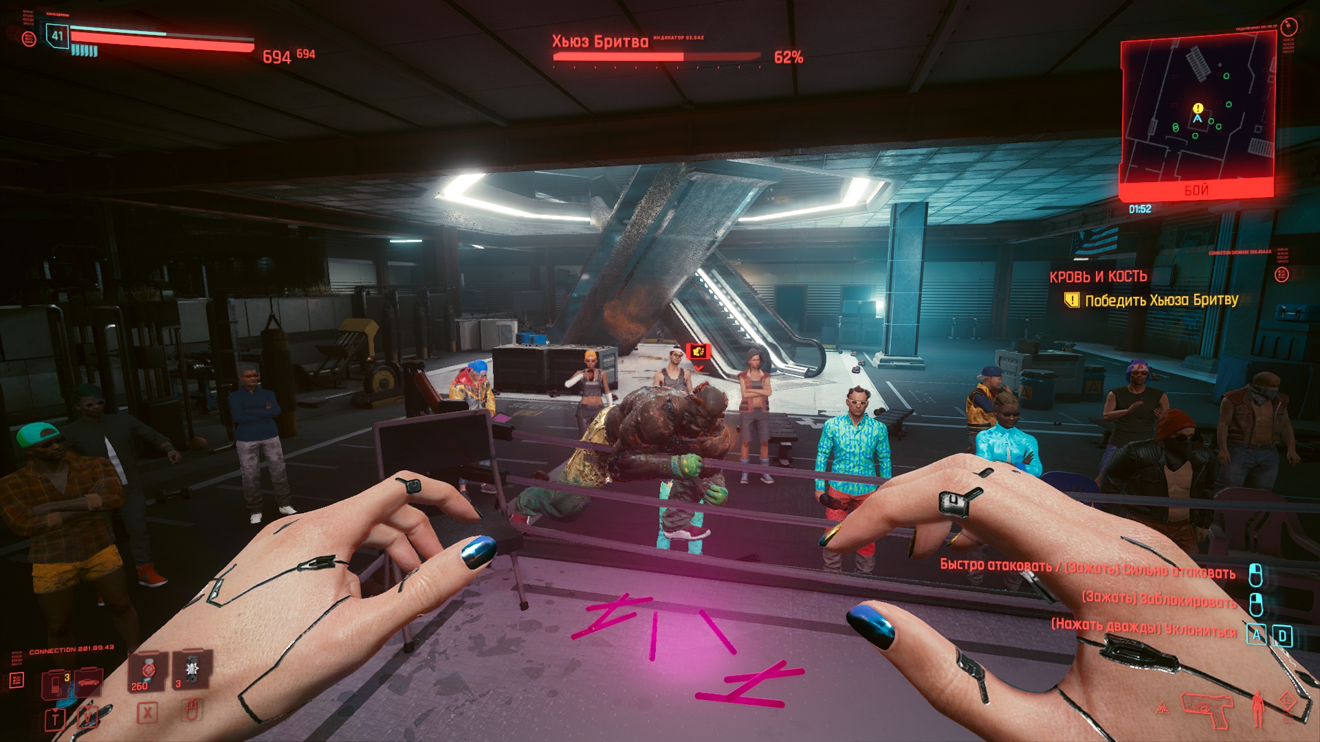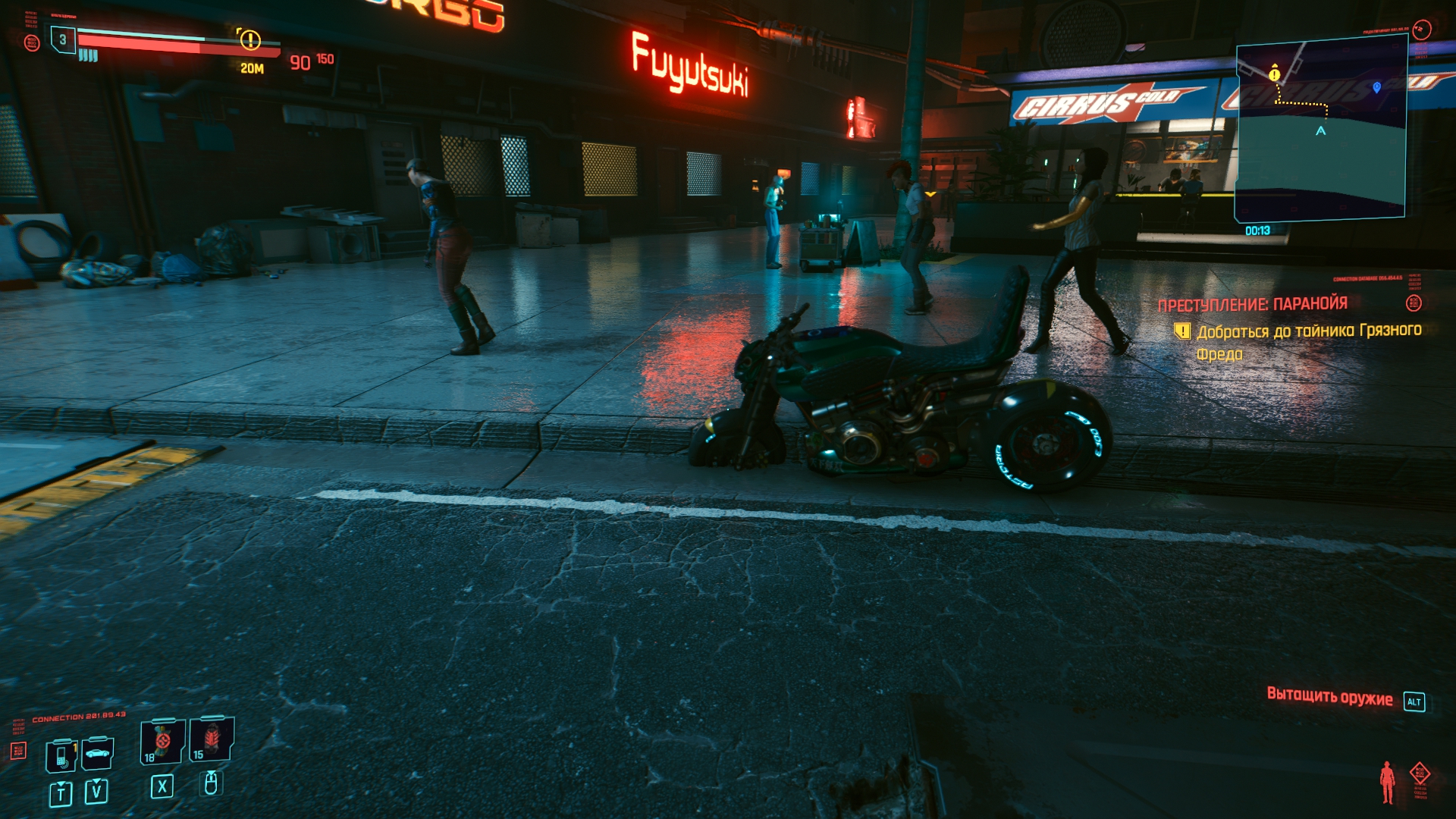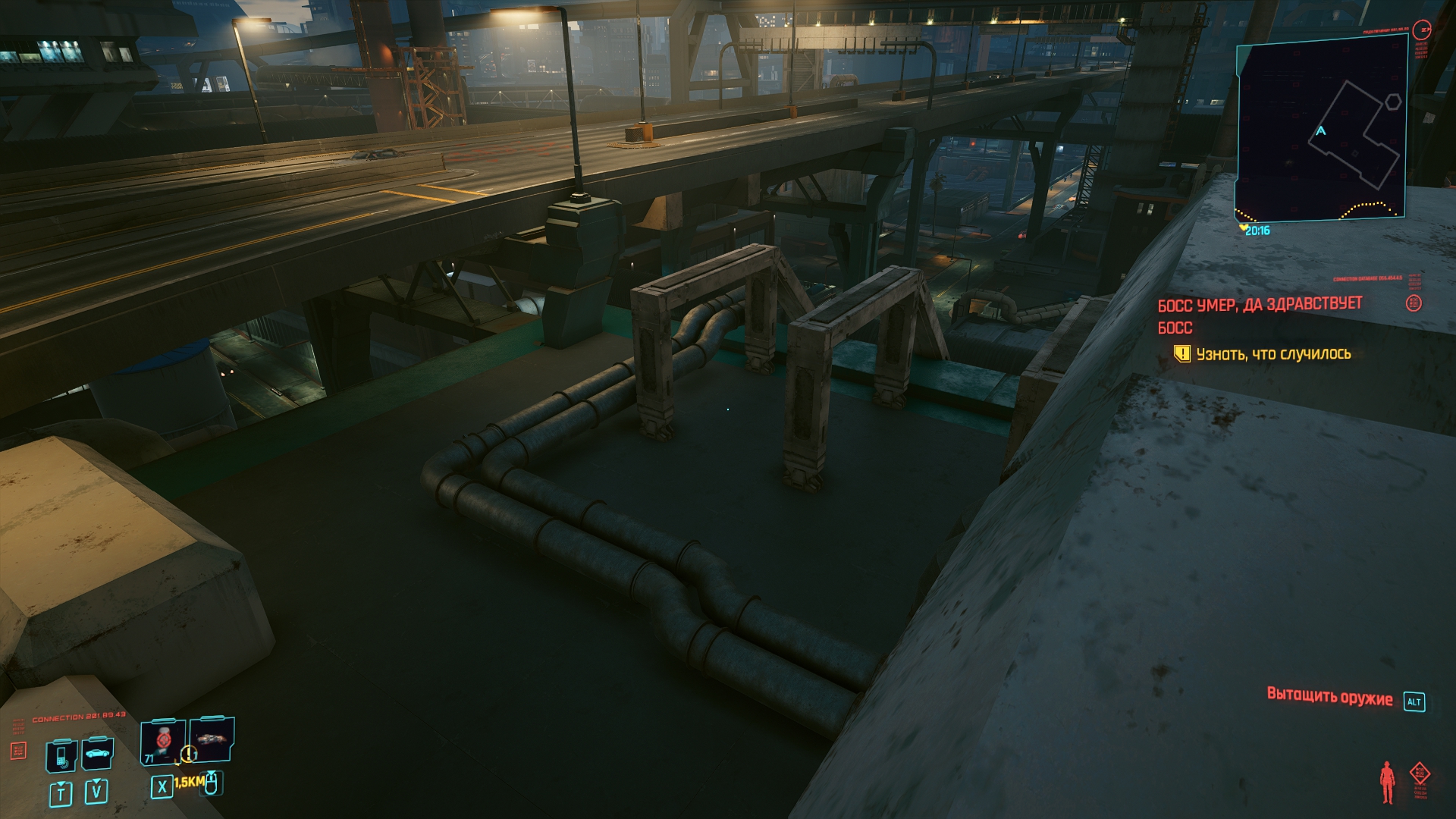 Геймплей и все что с ним связано — это плохо, это очень плохо. Сам мир может и красивый, никто не спорит, особо. Да вот только что здесь забыла стрельба из Фоллаута 4 ? Ей уже 5 лет в обед, может стоило её проапгрейдить ? Не, ну ладно. Хотя чего я доебываюсь, если в том же пасосном Ф4 от каких-то мудаков модификаций для одной только пушки больше, чем для вообще всего модифицируемого снаряжения в КП, да, кстати, а сделать что-то большее, чем глушитель и прицел — слабо ? Ну там разные пули, удлиненные/укороченные стволы, тоже нет ? Дорого ? Ладно-ладно, дорого, так дорого. Хрен с ней, с стрельбой, у нас же есть боевая система ближнего боя прямиком из Скайрима, зачем парится о такой хуйне. Ну тогда может поговорим о разрушаемости ? Почему она есть только в одном задании и далее просто испарится, это как работает ? Или "вариативность" прохождения... А в чем она заключается ? В том же Deus Ex можно пролезть через вентиляцию, взломать/выломать дверь, распидорасить стену и просто войти. А тут либо открыть дверь и зайти, либо влезть в ближайшее окошко, так как разрушаемости нет, но она как бы есть, вот и понимайте как хотите. А, точно, киберпанк же ! Тут так дохуя имплантов, как насчет двойного прыжка или одного, но очень высокого ? Или возможность подсвечивать противников, это же так интересно. Единственное, что преображает ГГ - импланты для ближнего боя, которых в игре штуки 4. Если показалось, что этого маловато, то спешу огорчить или обрадовать. Так и есть, причем по факту "играбельных" модификаций всего 2, или даже 1,5 ибо руки-базуки не прокачиваются и остаются с тем же всратым уроном, что и в начале. Так что "рабочим" вариантом можно назвать только руки багомола и все. Делать отсылки на что-то кроме Джонни мнемоника видимо сложно и не хватило бюджета в 300 лямов, а может и времени. Хуй их знает. Я вот лично анимяку (большая часть данного жанра) не смотрю и вспомнить могу только призрака в доспехах, чей костюм не помешал бы в качестве устанавливаемого импланта для стелсеров.